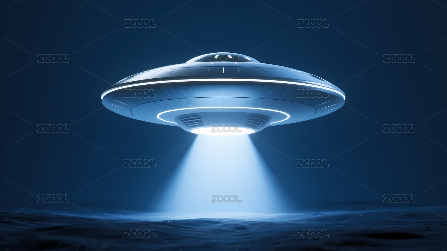 科幻寂静荒凉的外星悬浮的飞碟3D立体插画