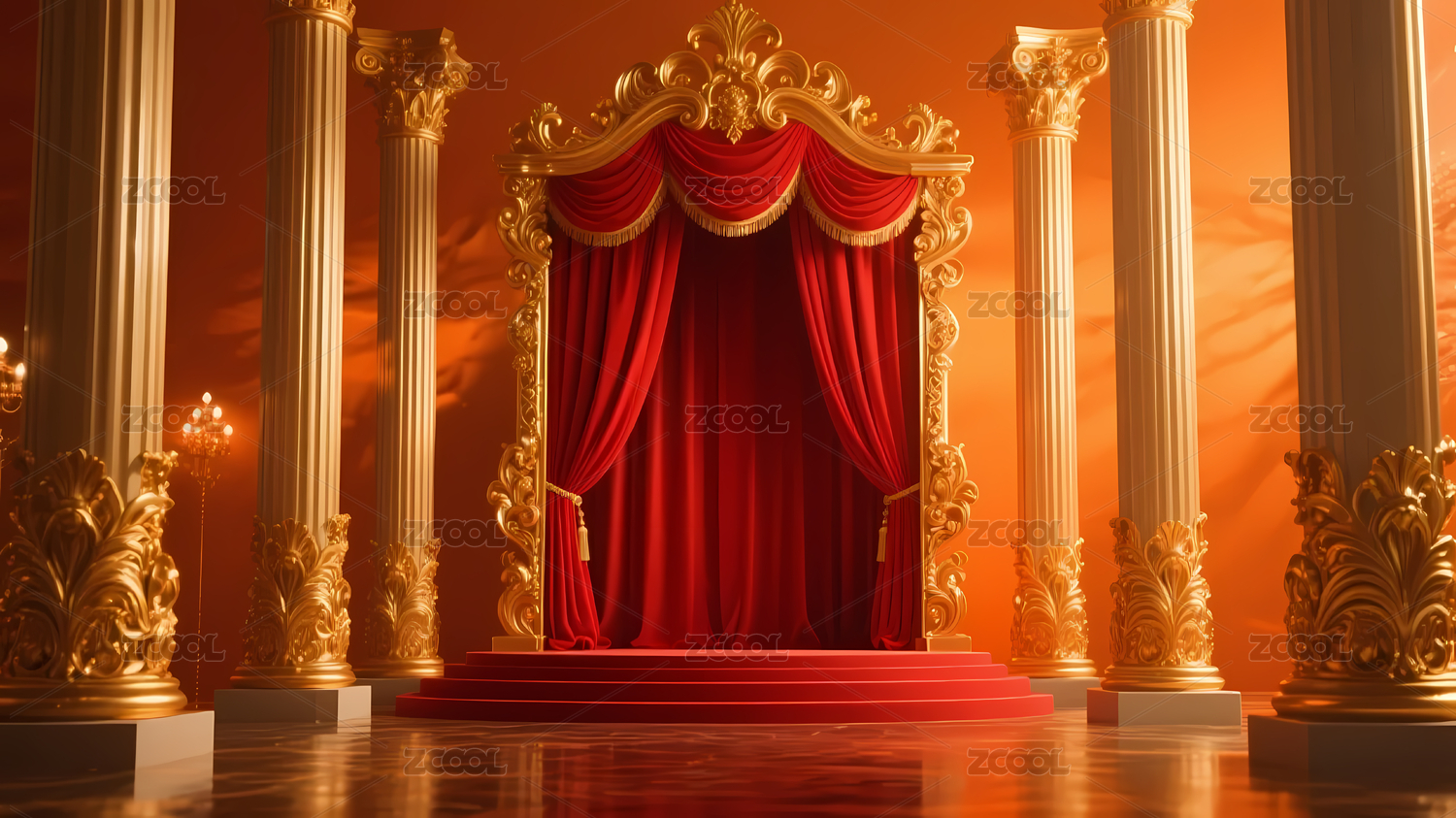 金色,帷幕,舞台,灯光,空间,装饰,光影,质感,氛围,空旷