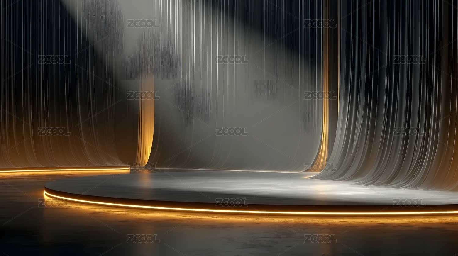 金色,帷幕,舞台,灯光,现代,空间,装饰,光影,质感,线条