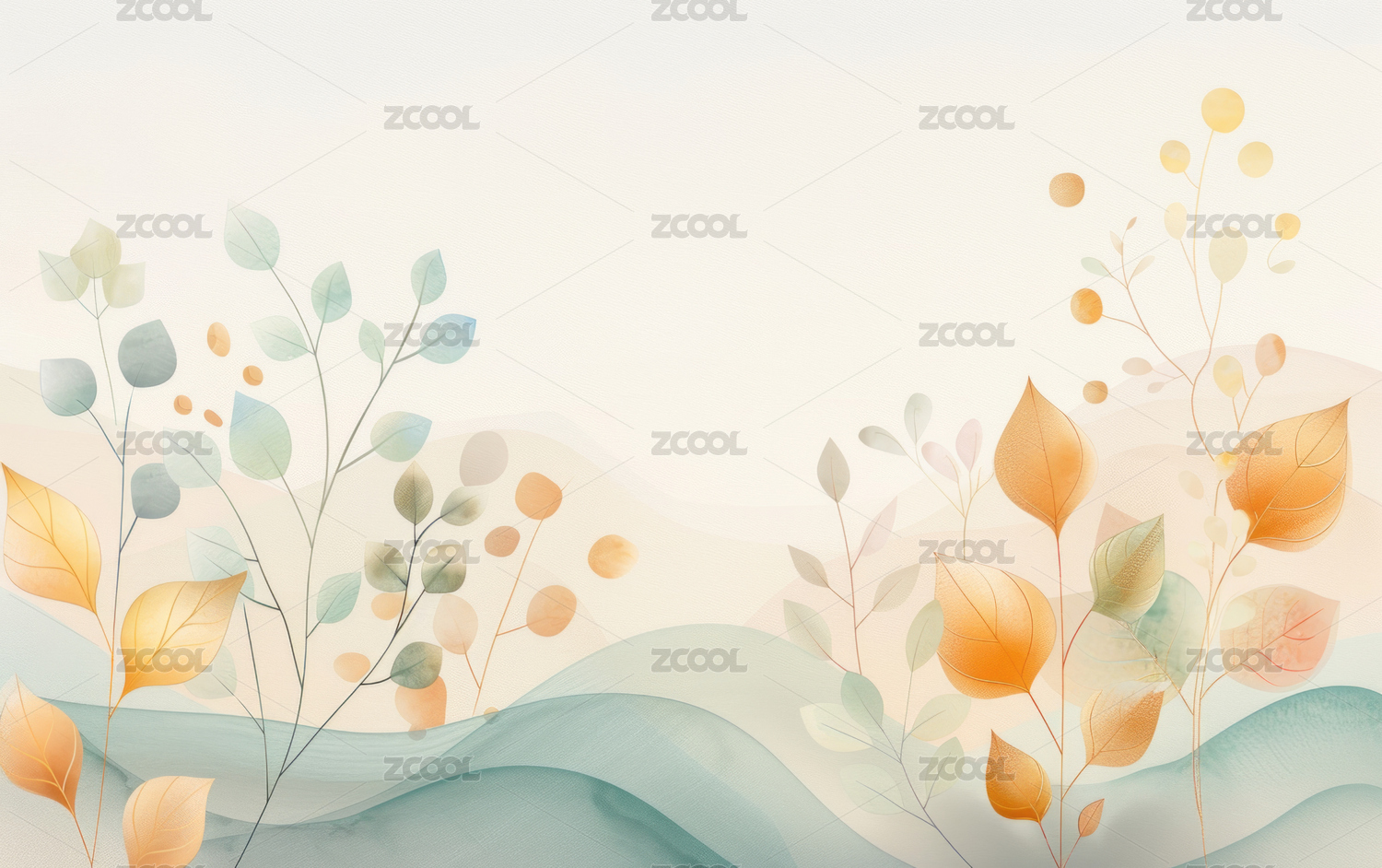金色绿色彩色叶子花朵插画背景