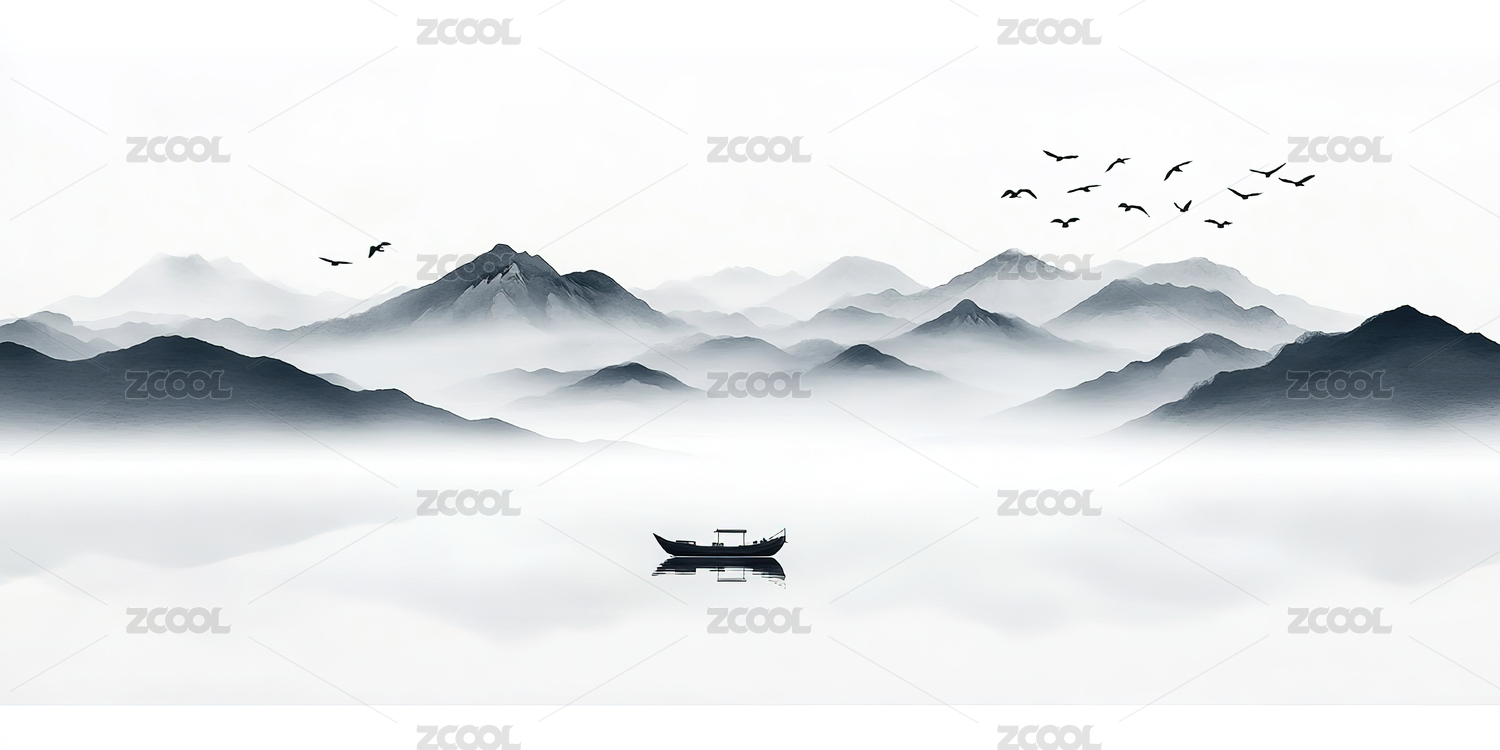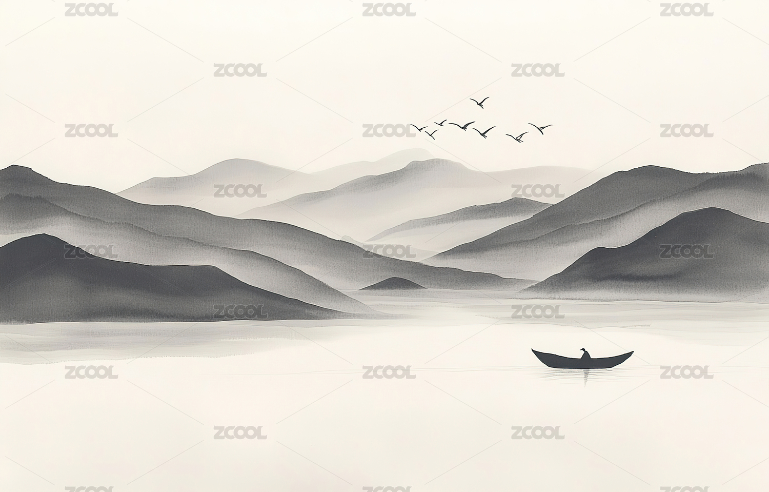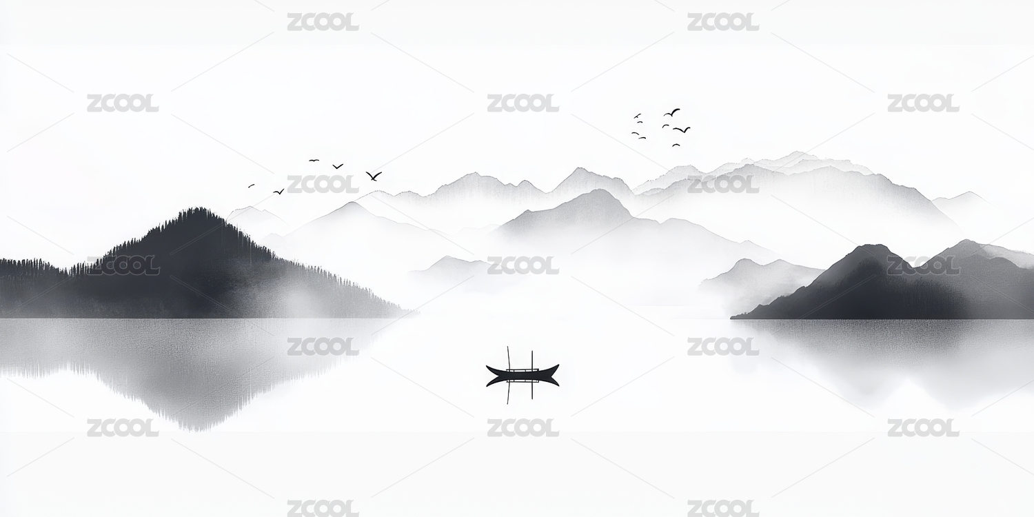极简主义,黑白,湖泊,山脉,水面,倒影,鸟,飞鸟,孤寂,宁静