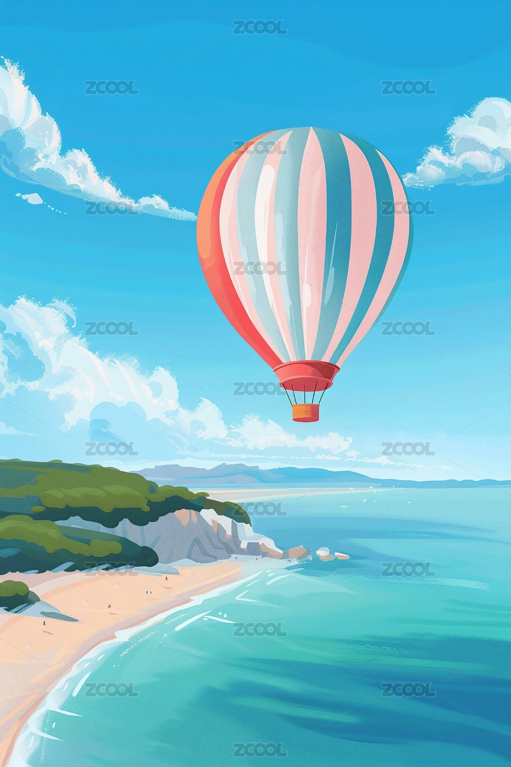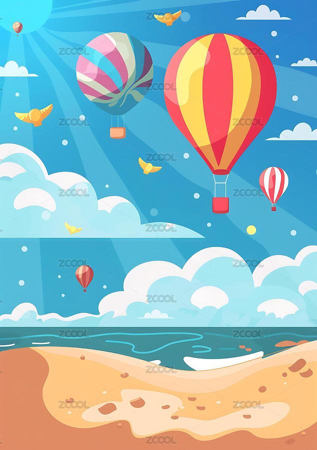 海岛热气球插画