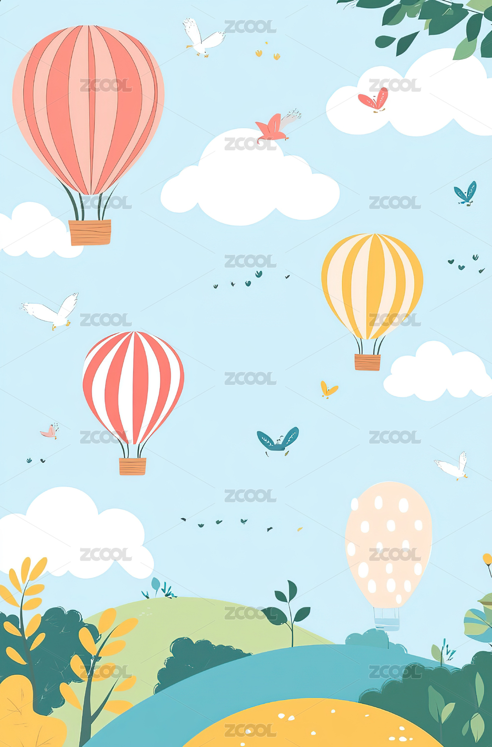 热气球卡通插画
