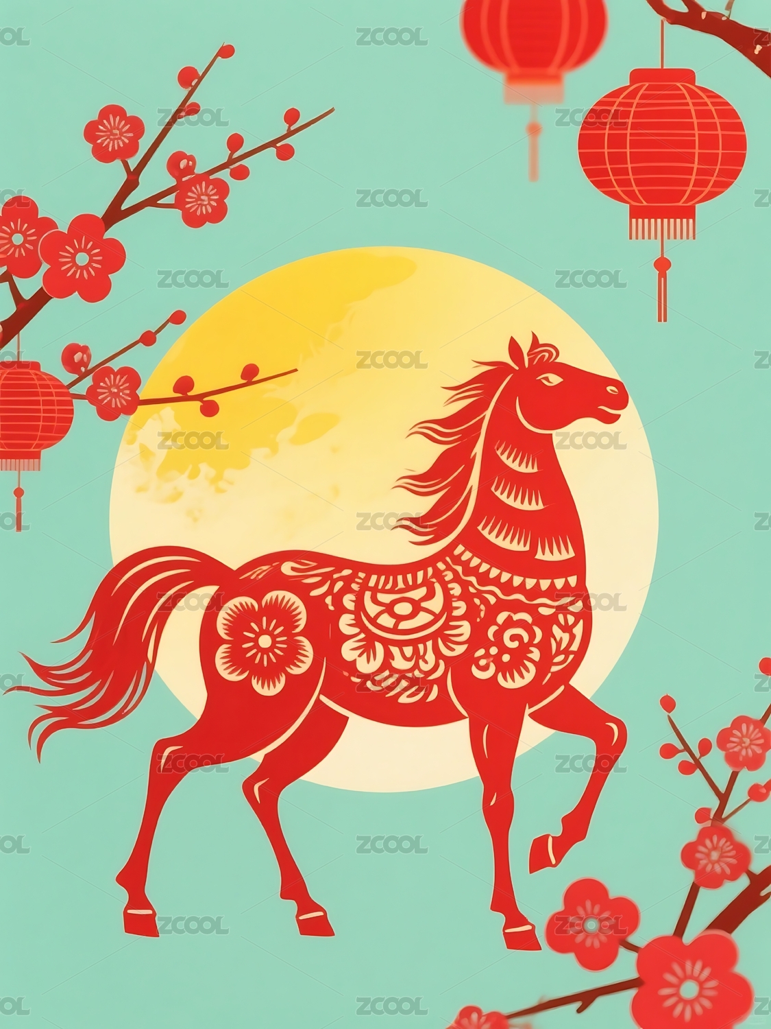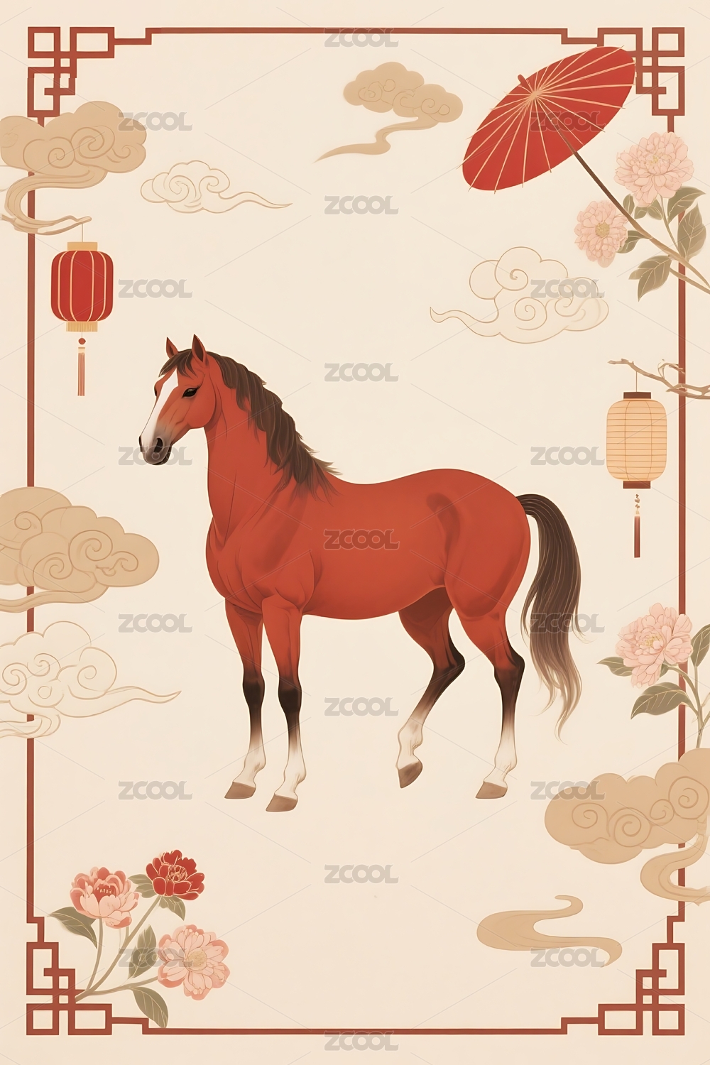 花朵,边框,红色,喜庆,民俗,马匹,花卉,装饰画,灯笼,装饰