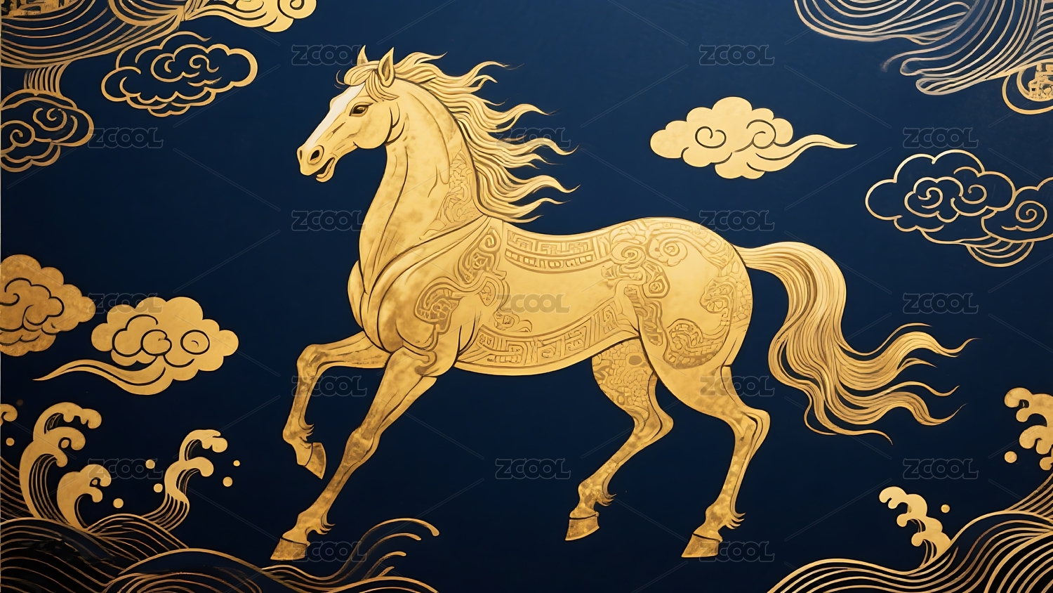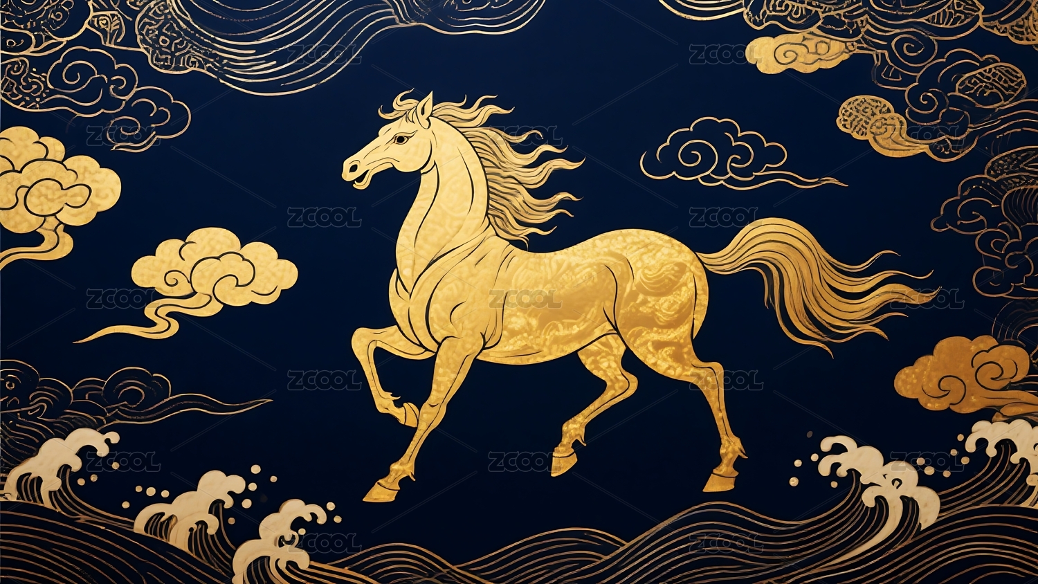 装饰,图案,金色,云朵,边框,传统,背景,设计,装饰画,金色马