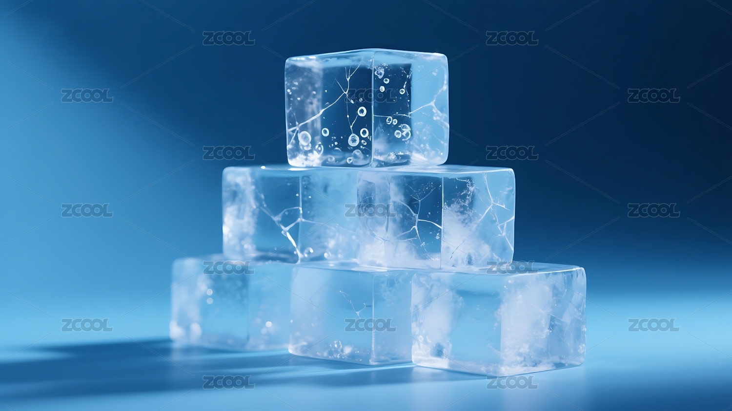 蓝色,背景,光滑,透明,质感,气泡,光,冰块,堆叠,裂缝