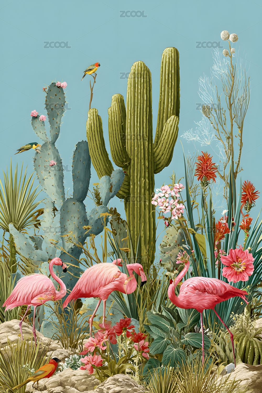 沙漠,仙人掌,粉色,插画,景观,艺术,植物,自然,装饰,绘画