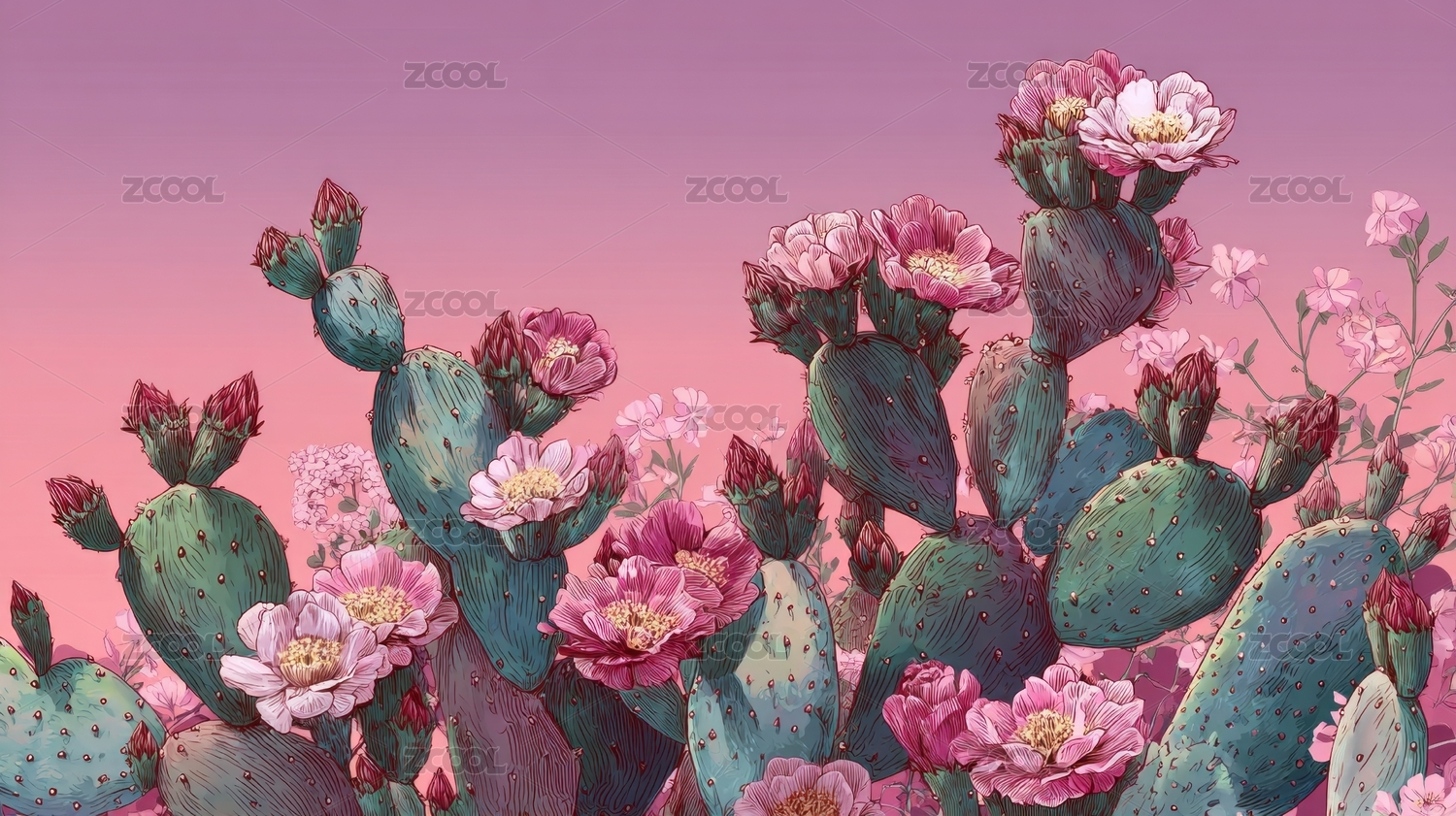 沙漠,仙人掌,粉色,插画,景观,艺术,植物,自然,装饰,绘画