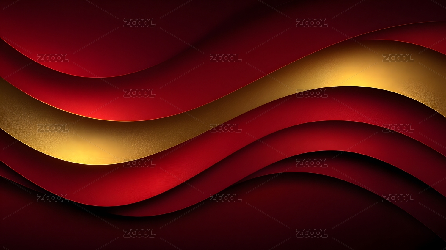 红色波浪与金色条纹背景