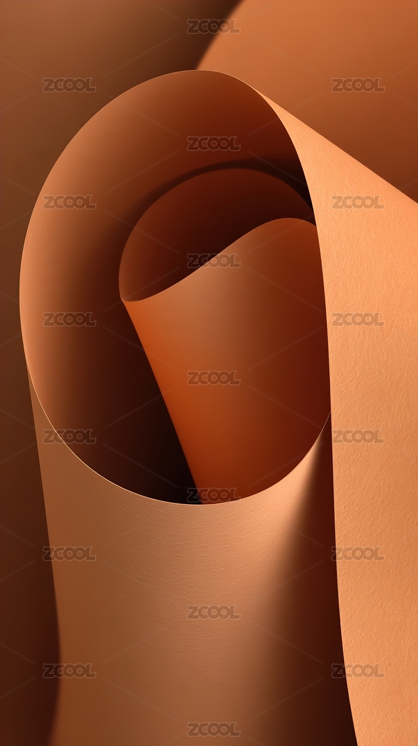 棕色纸张卷曲的特写镜头呈现抽象的流动感