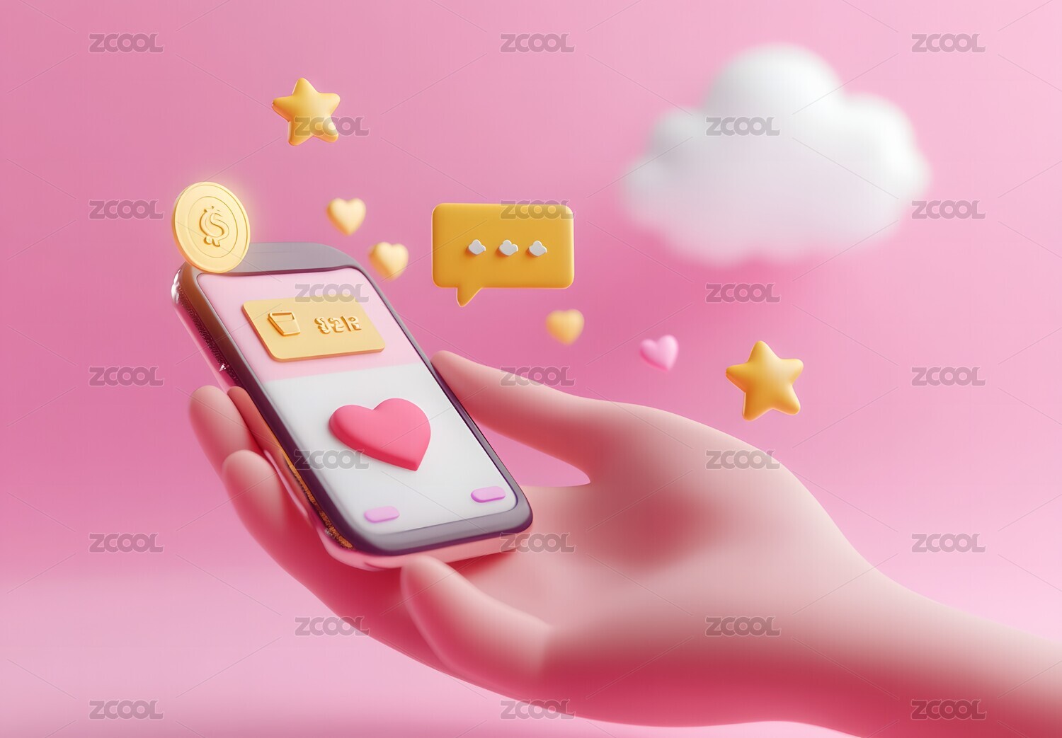 卡通模型点赞收藏评论喜欢操作3D手机场景