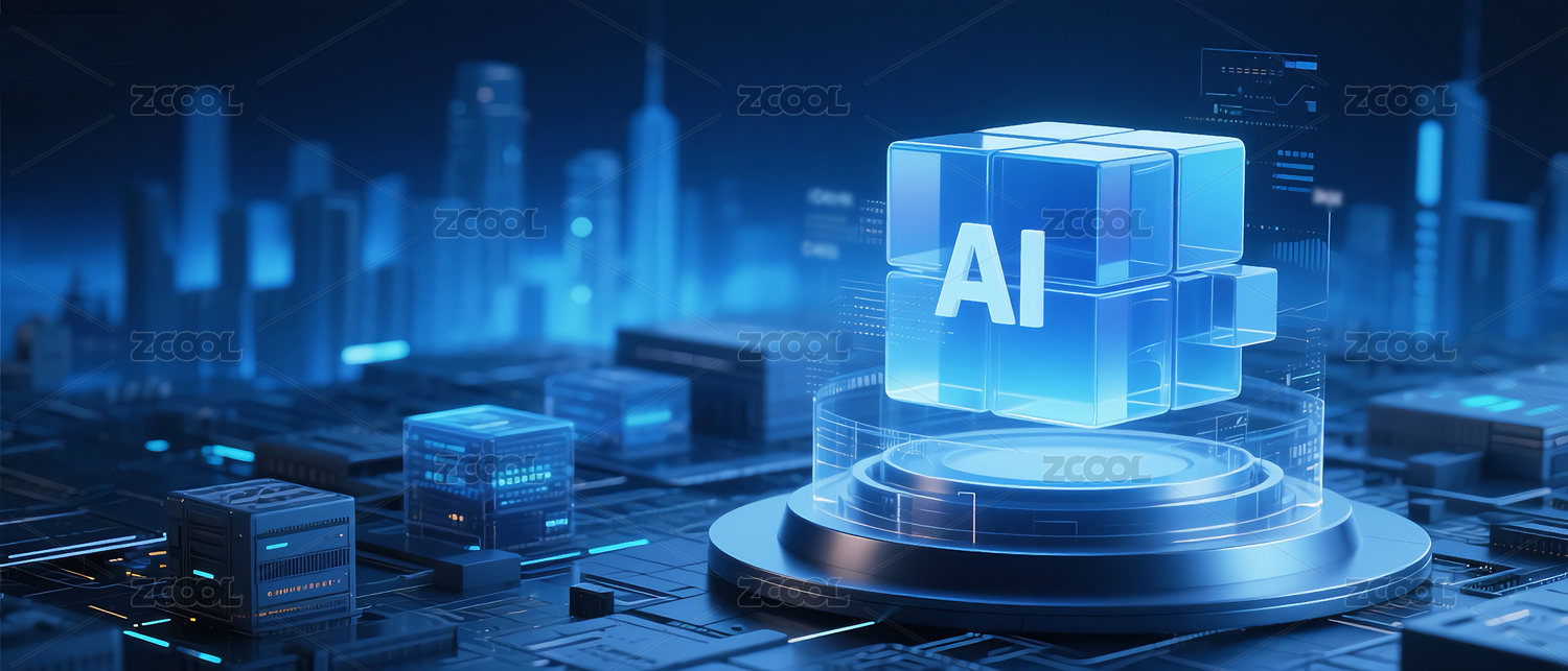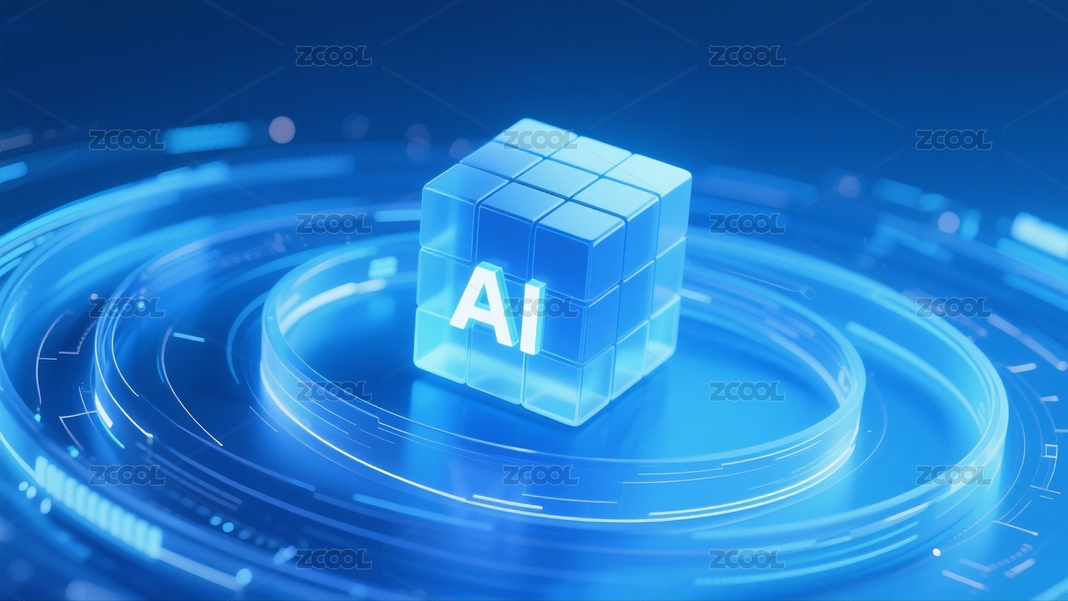蓝色,科技,图标,AI芯片,商务,主视觉,渐变,光影,毛玻璃,人工智能