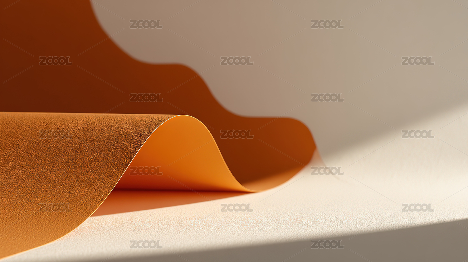 卷曲的纸张在光线下呈现出色彩和阴影变化