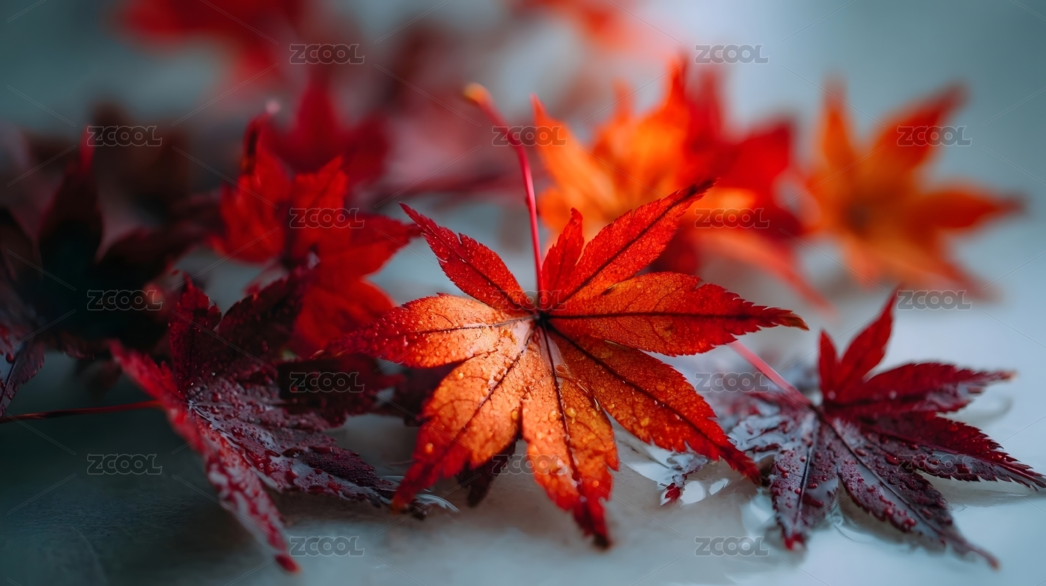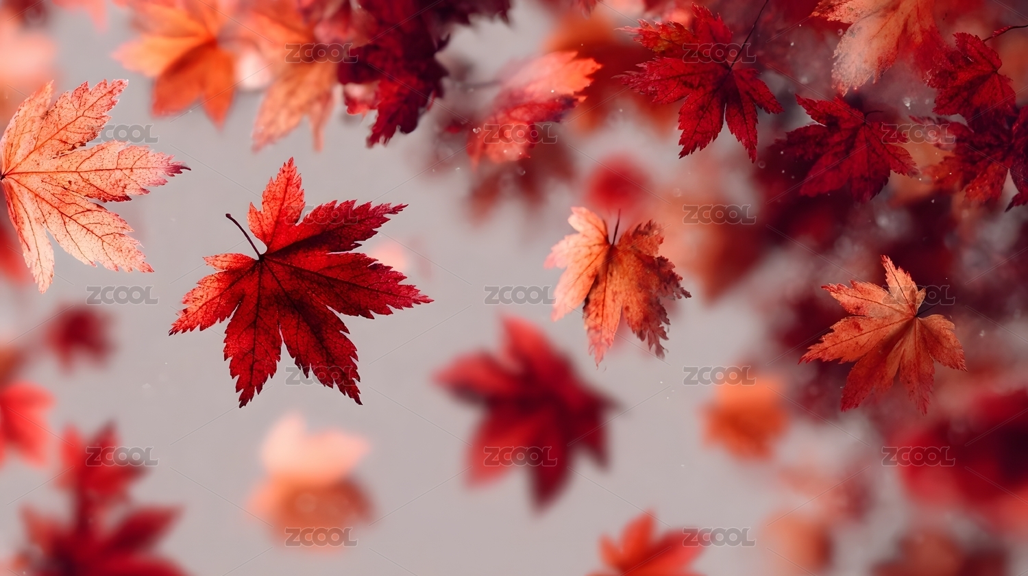 秋叶,飘落,秋季,枫叶,橙红,叶片,凋零,季节,自然,动态