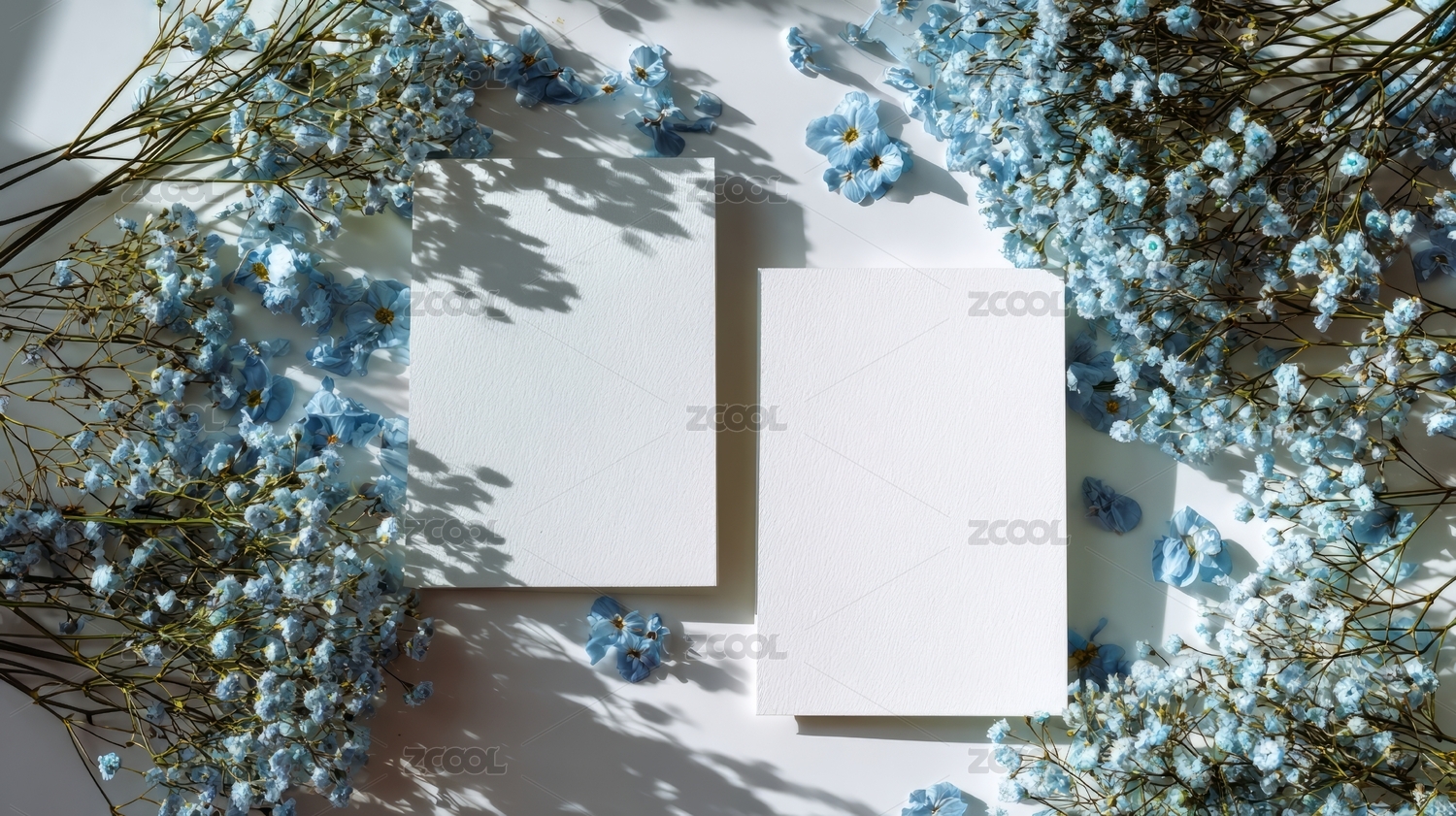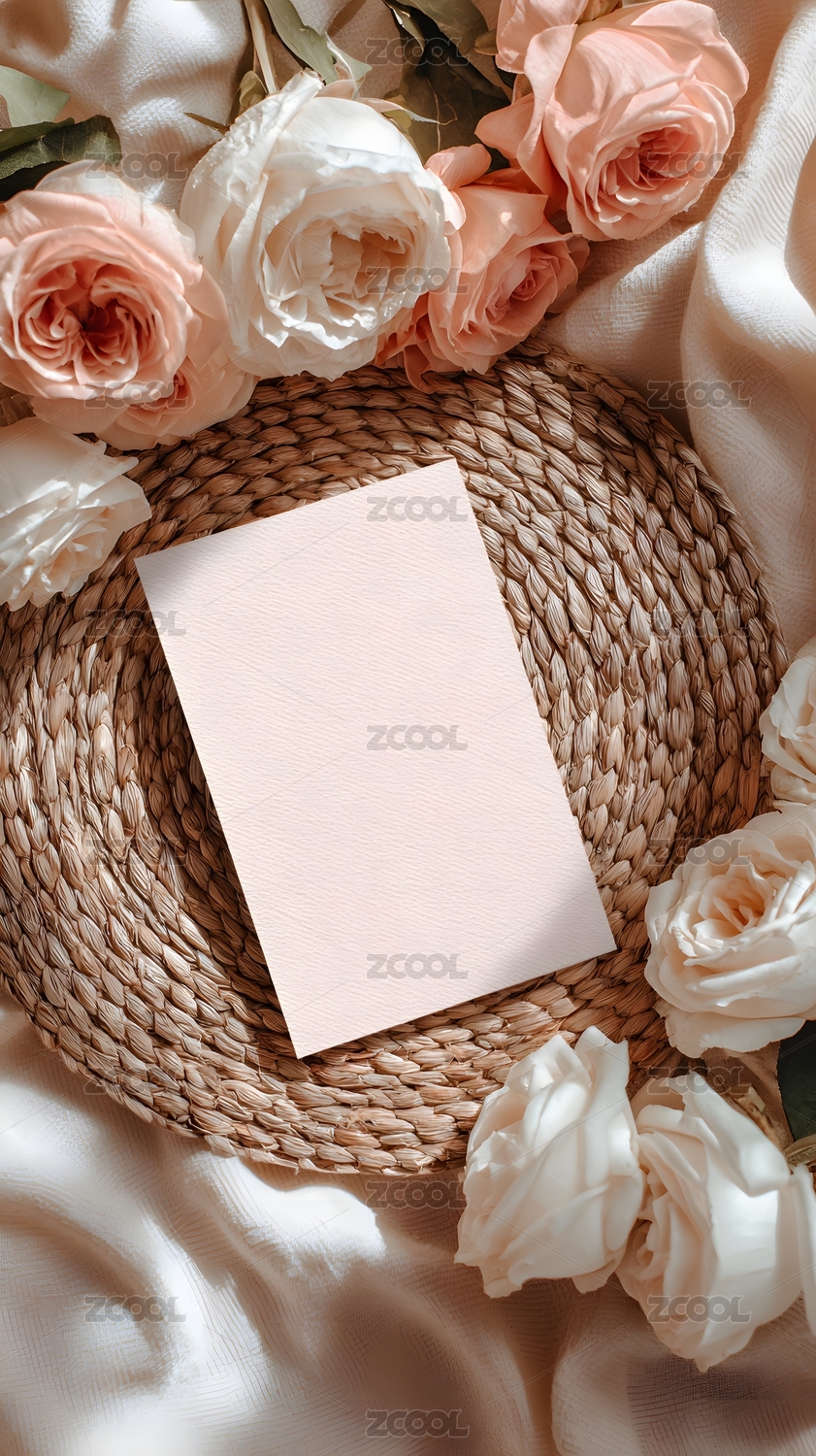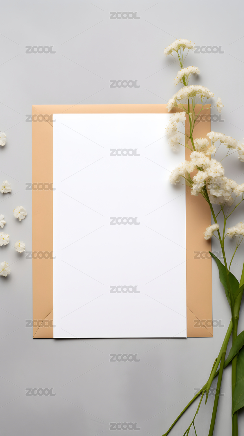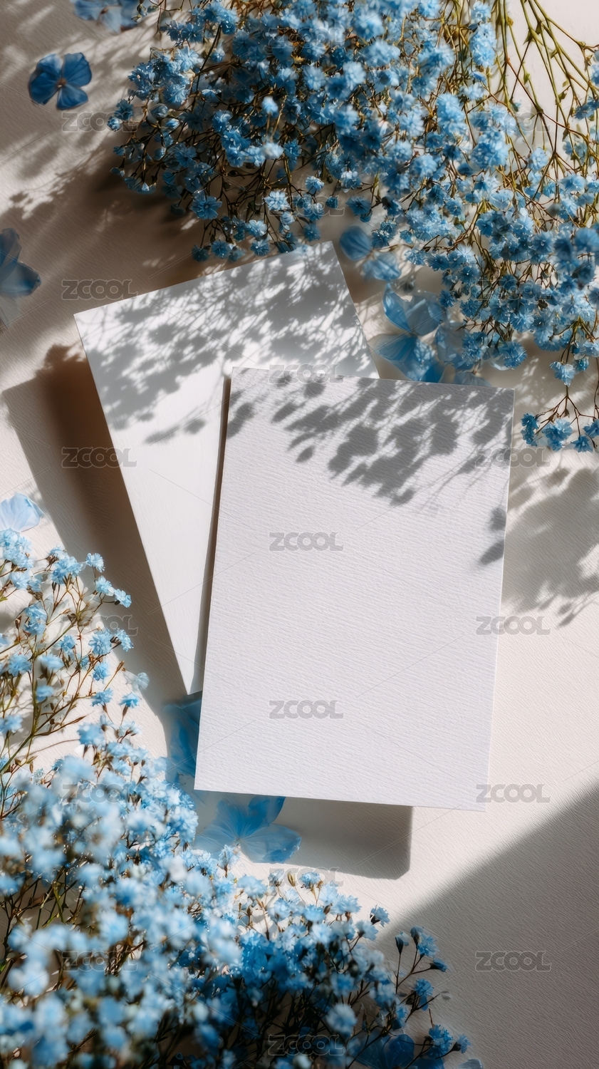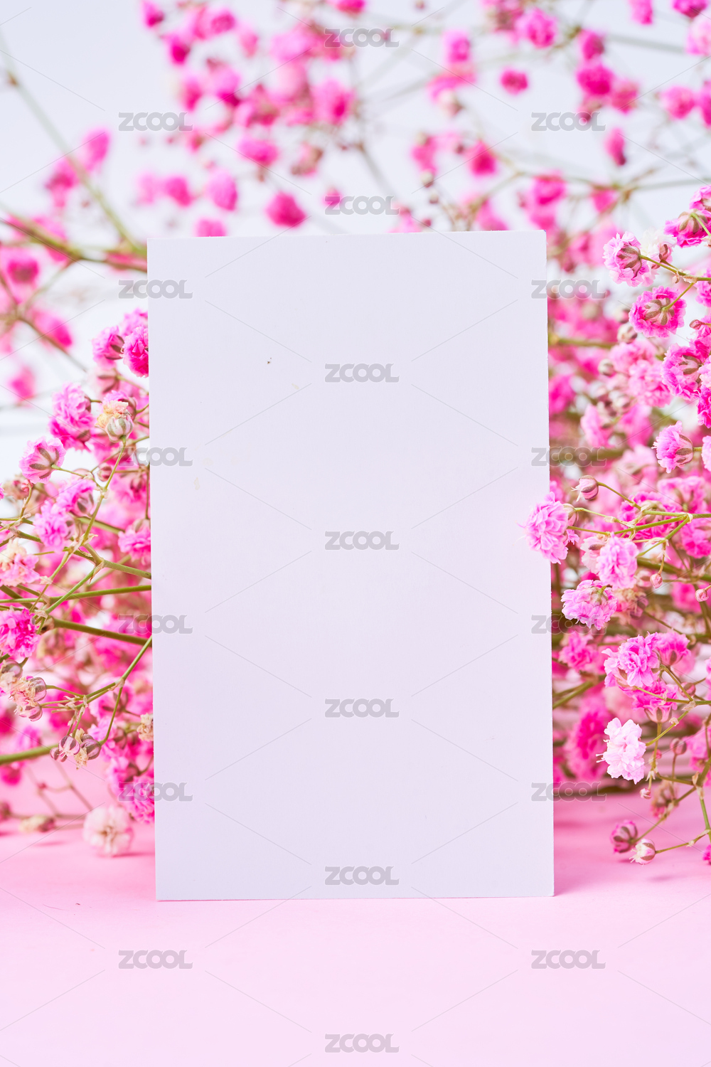 淡雅花卉围绕空白卡片