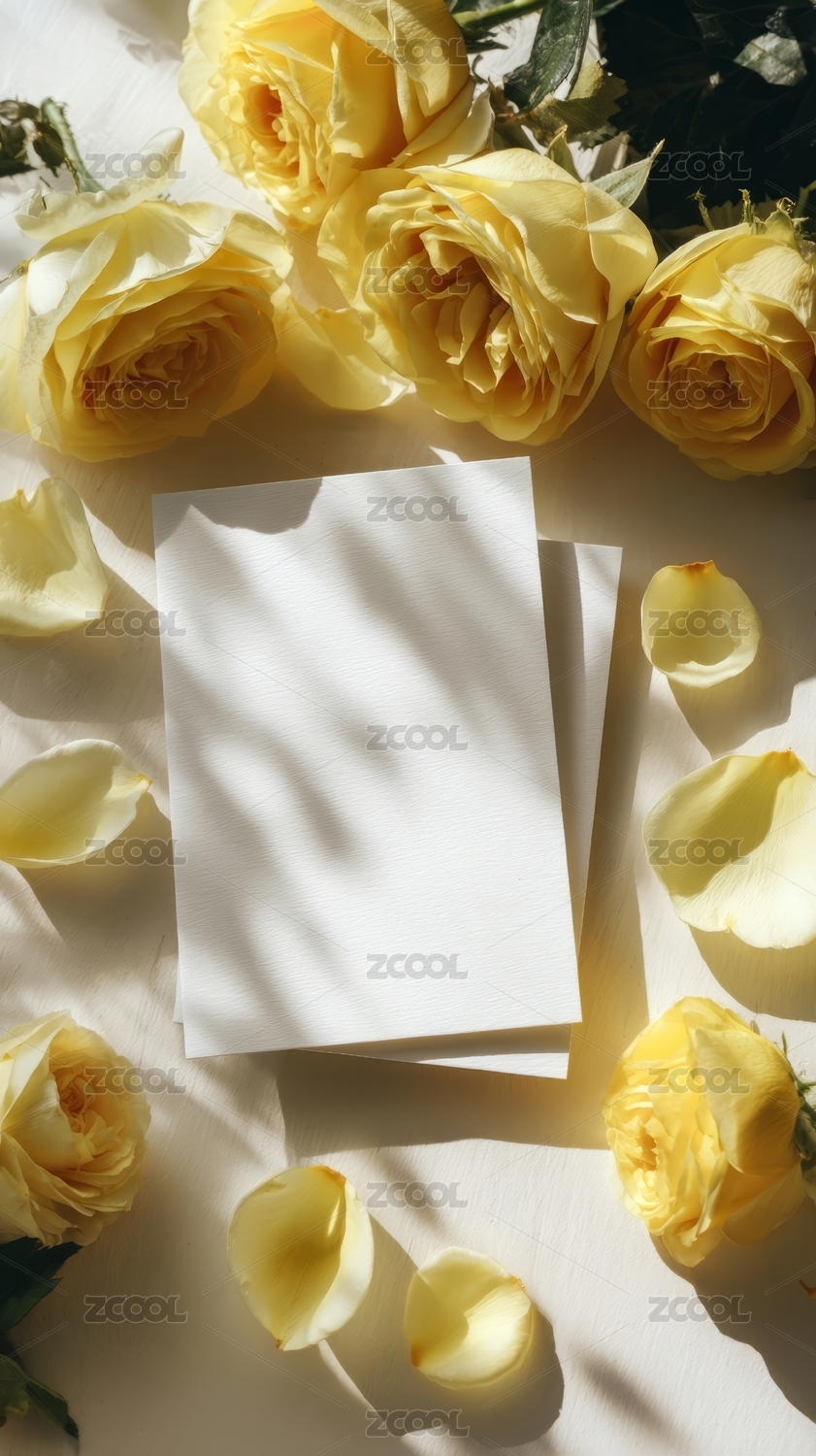 黄色玫瑰与卡片