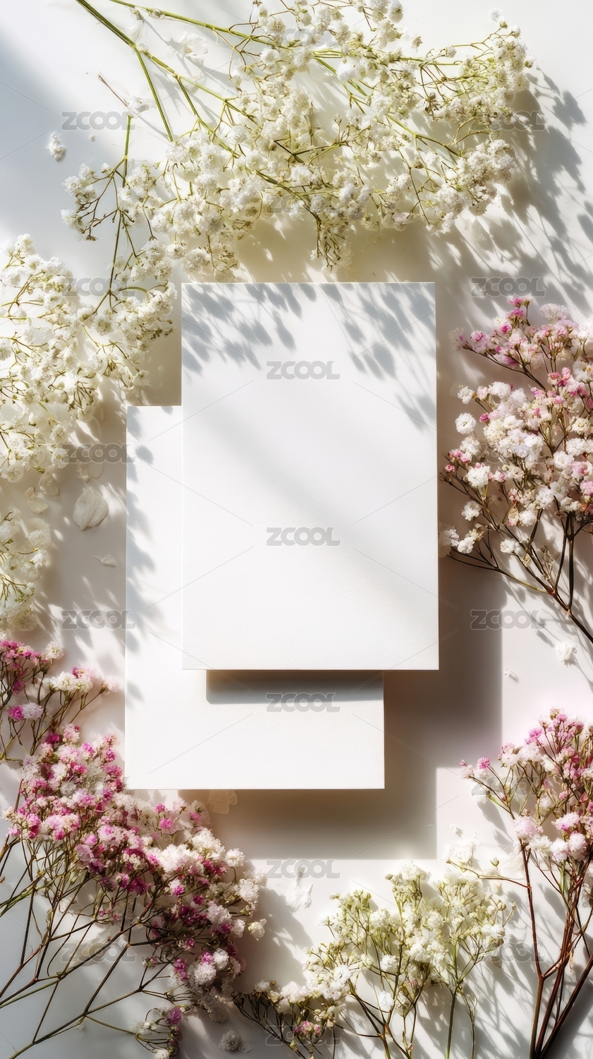 白色满天星与卡片