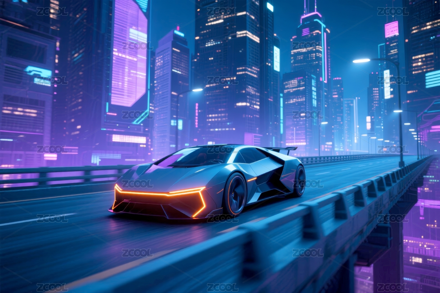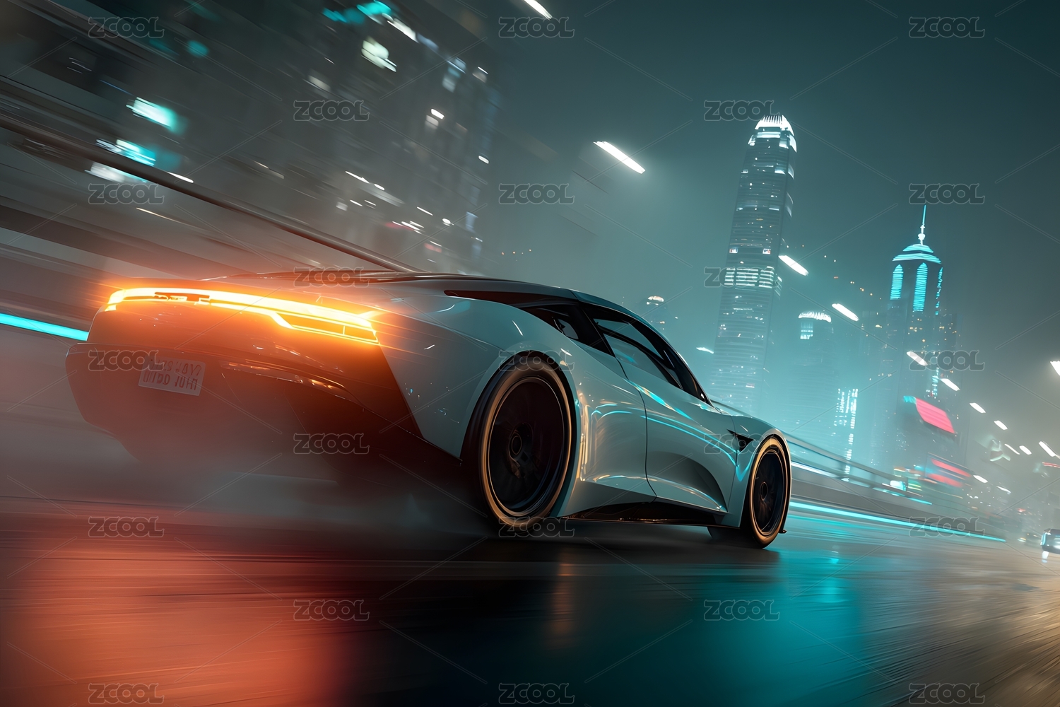 白车夜疾驰都市霓虹灯光下的速度与激情