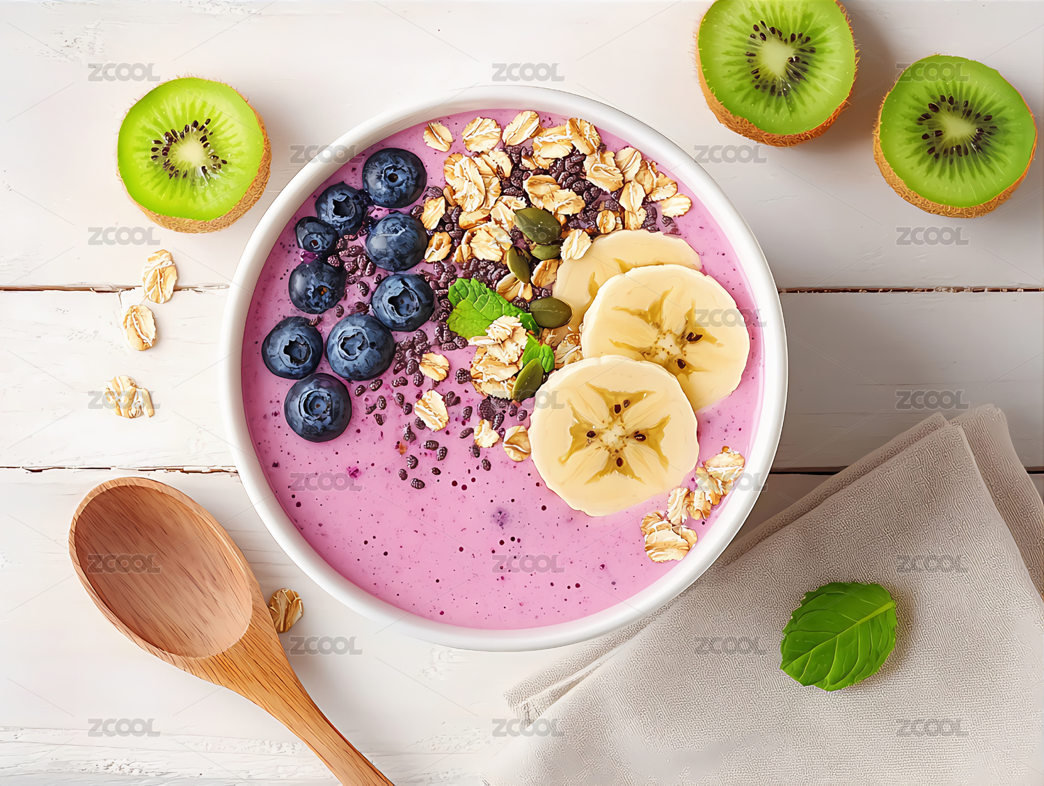 营养,早餐,碗,白色,背景,壁纸,燕麦,酸奶,蓝莓,汤勺