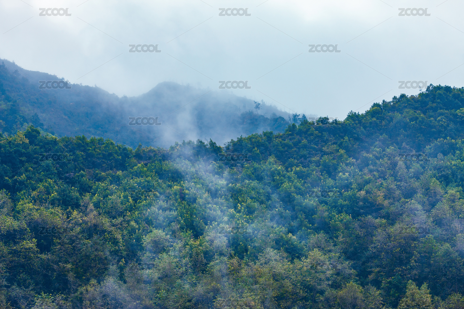 山脉,云雾,层峦,叠嶂,自然,风景,绿色,植被,天空,远景