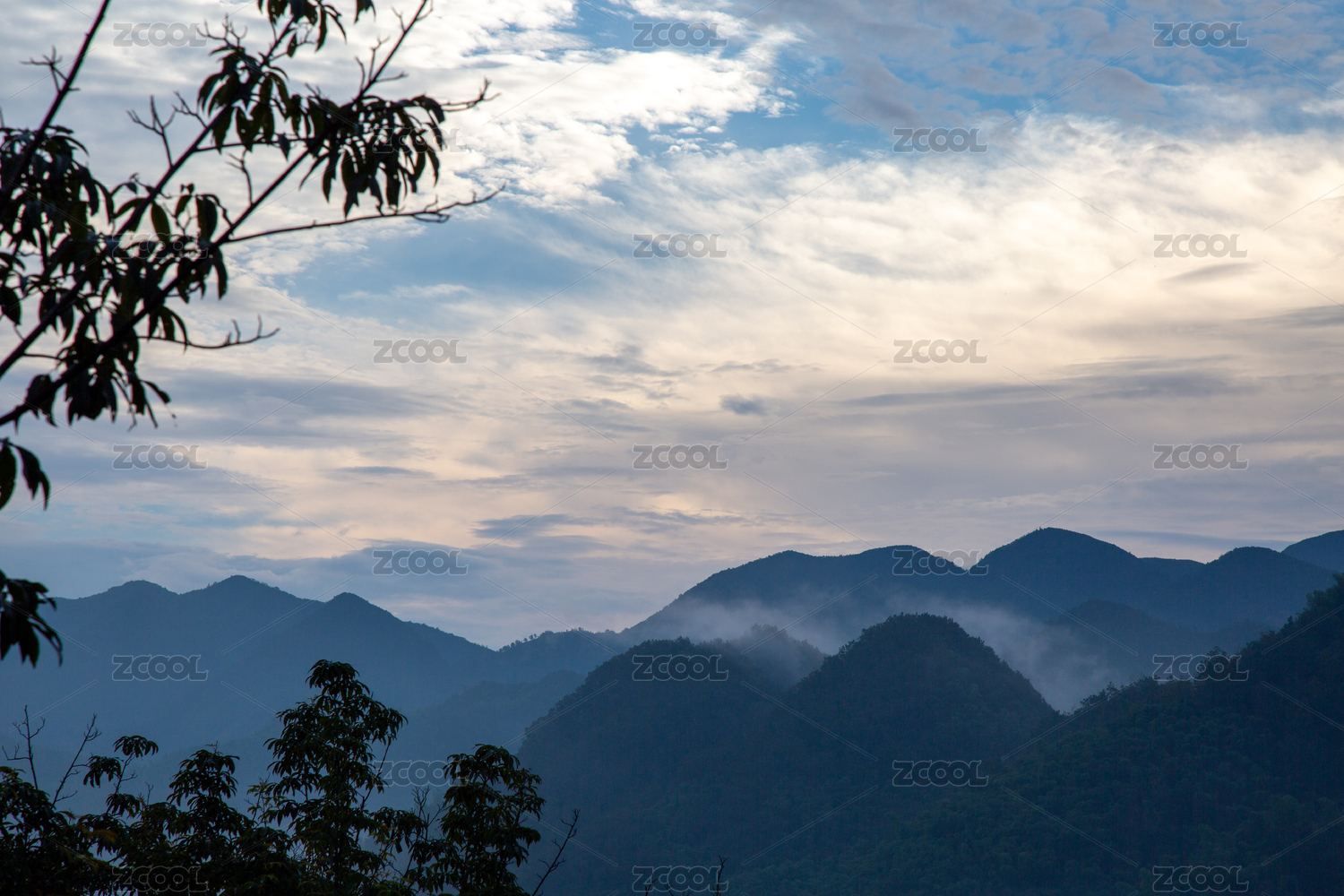清晨安徽宁国层峦叠嶂,云雾缭绕的山景