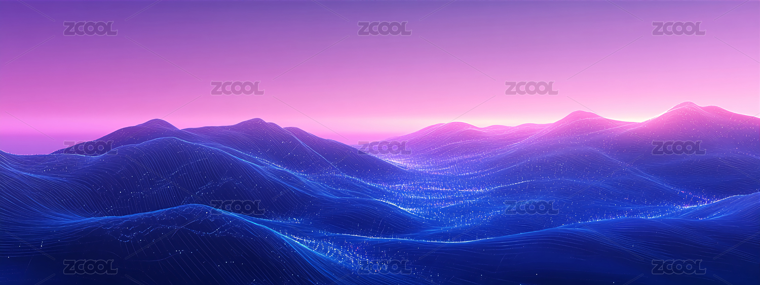 抽象,波浪线,山峰,空间,三维,科技,背景,蓝色,紫色,天空