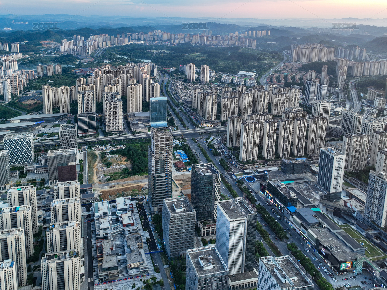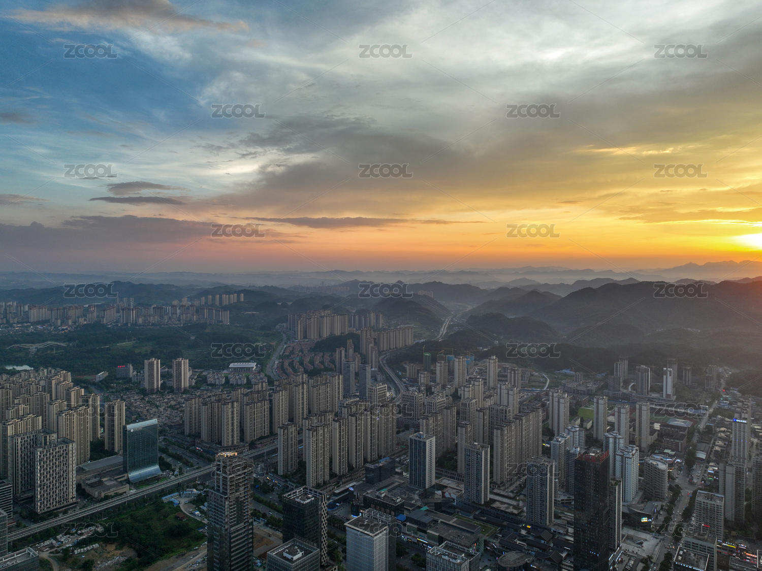 贵州省遵义市新蒲新区,城市上空的晚霞