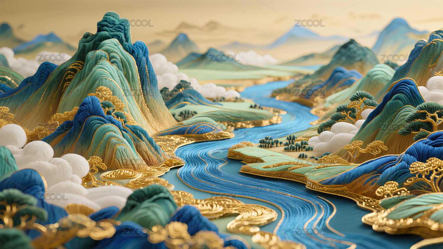 3D千里江山刺绣背景