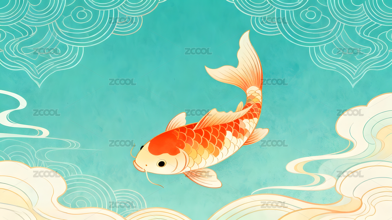 中式吉祥锦鲤贺岁喜庆插画