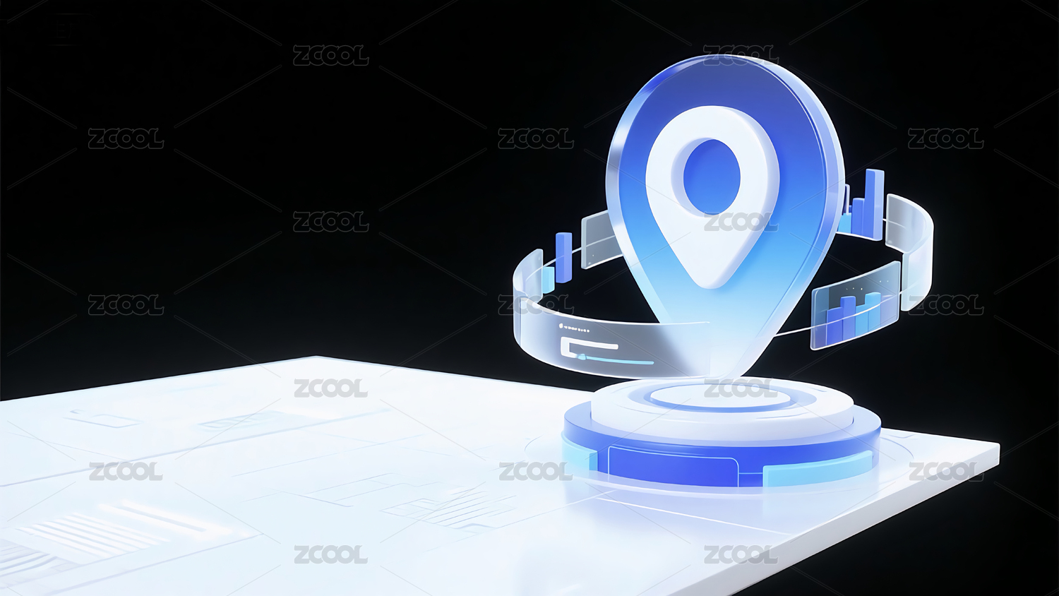 3D,毛玻璃,图标,科技,背景,底座,等距,蓝色,针点,导航