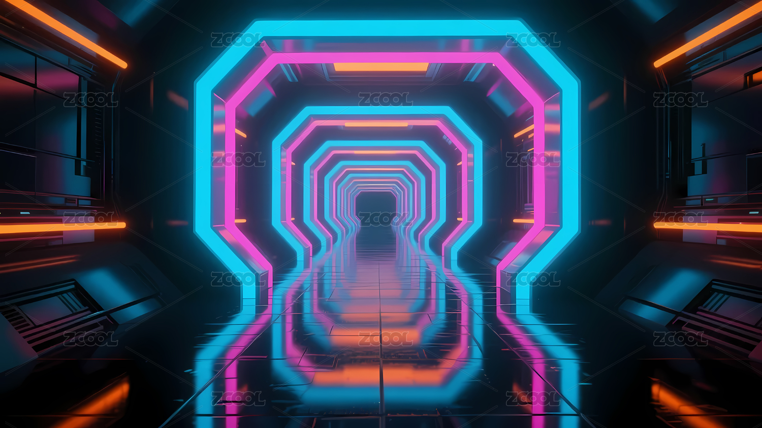 背景,橙色,黑色,未来,神秘,霓虹,紫色,隧道,科幻,灯光