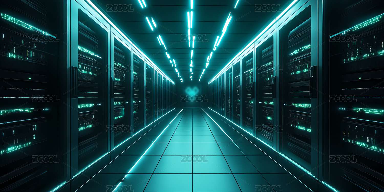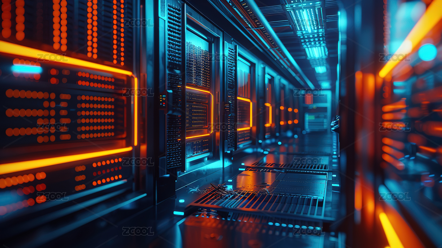 背景,服务器,机柜,走廊,蓝色,橙色,灯光,排列,未来,高科