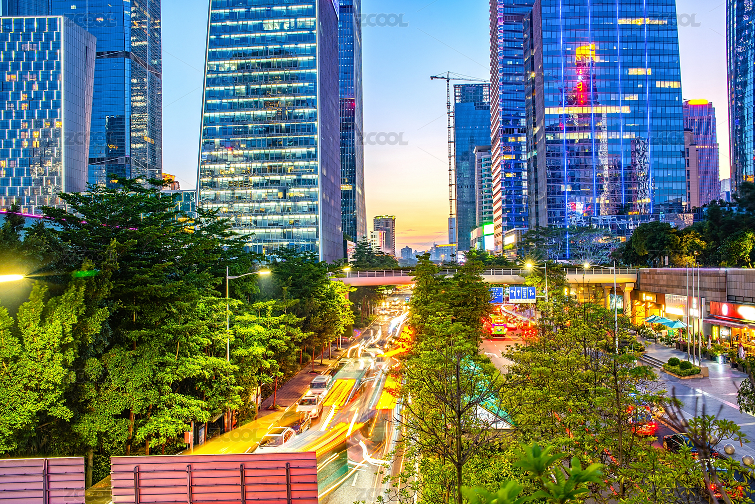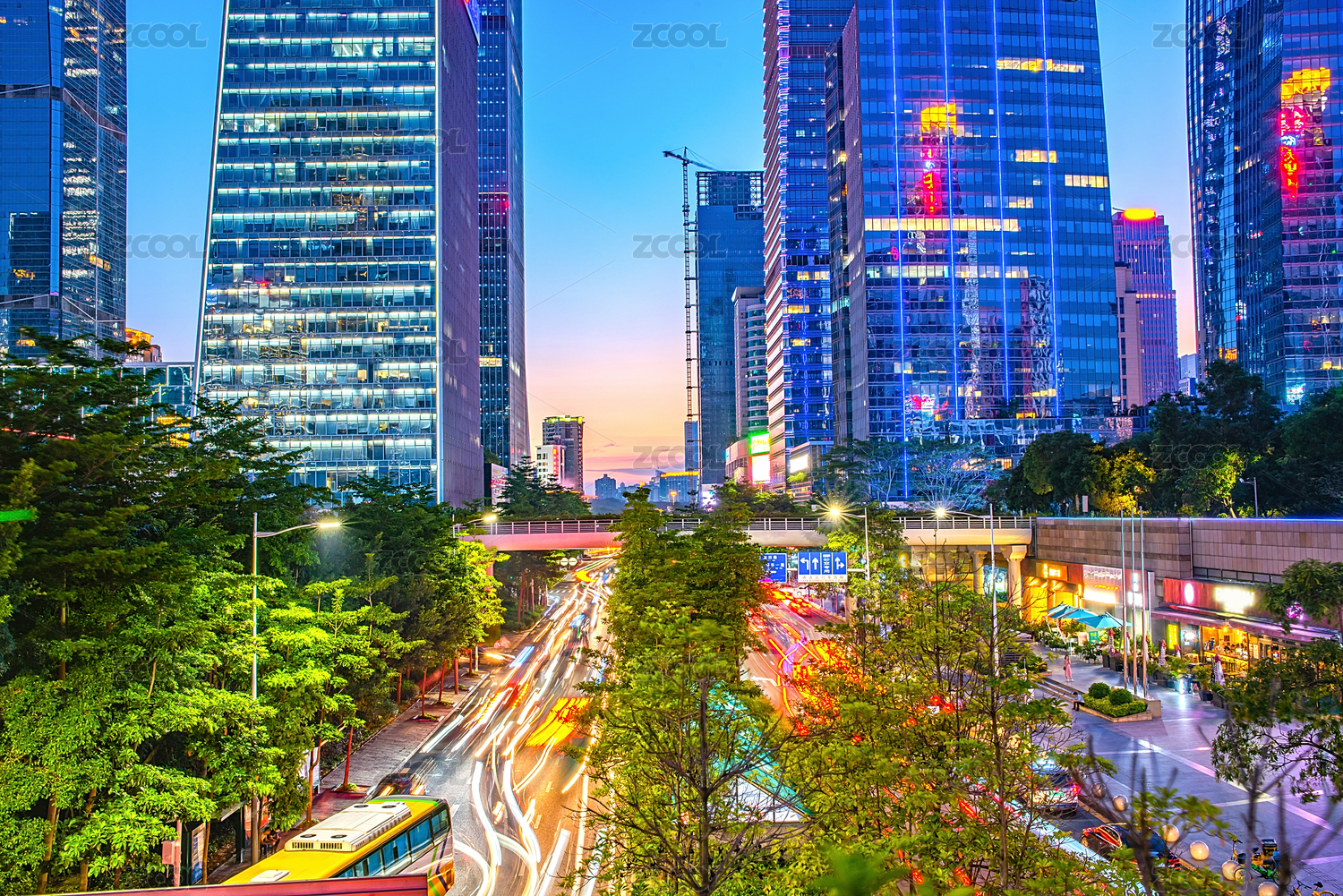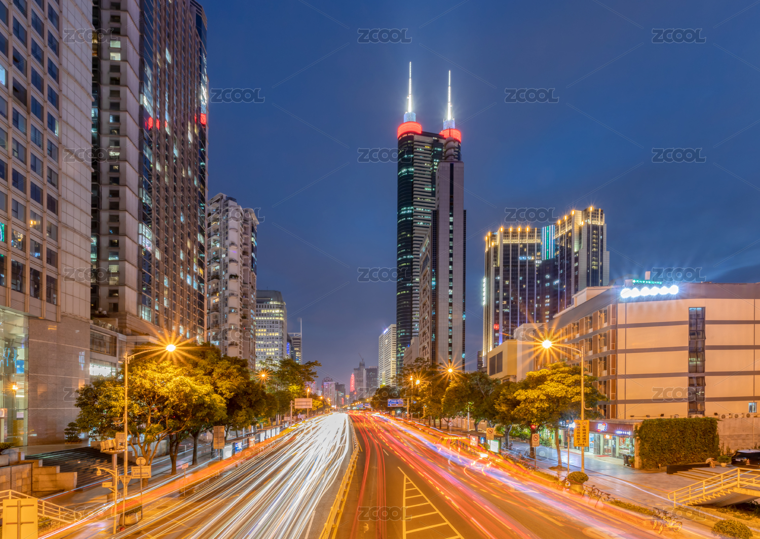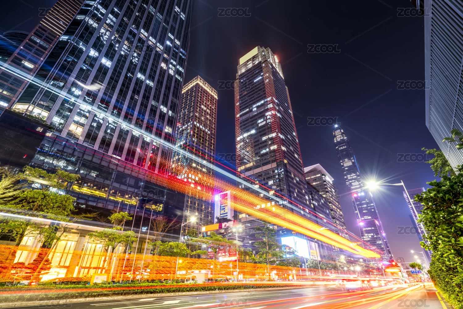 深圳现代建筑夜景和城市街道车流光影轨迹