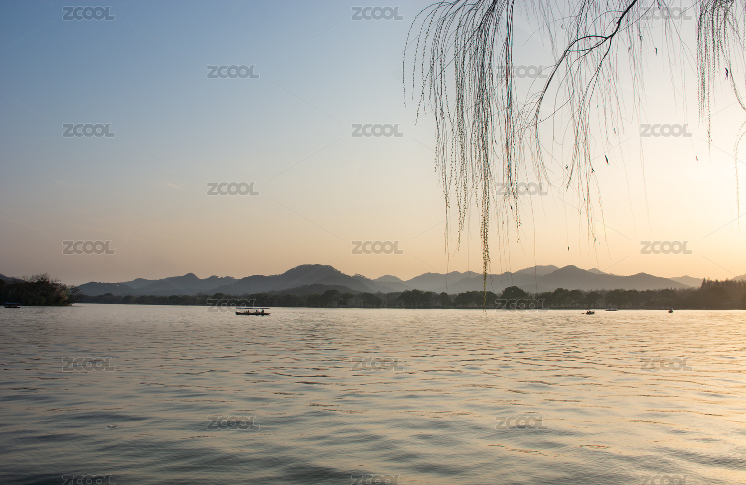 日落下的西湖山水