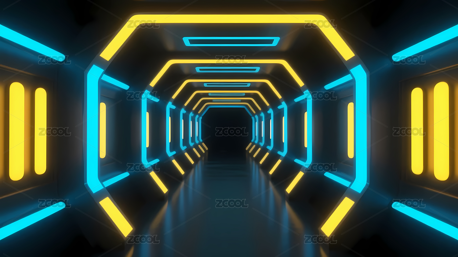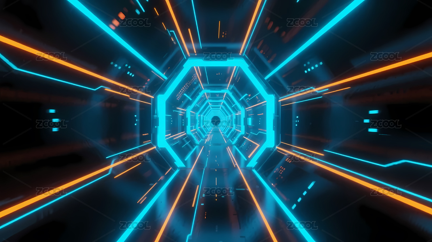 蓝橙霓虹灯科幻走廊
