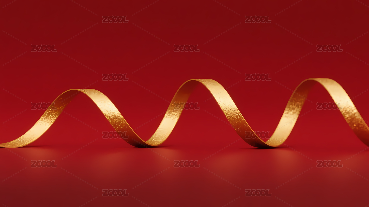 金色丝带红色背景蜿蜒