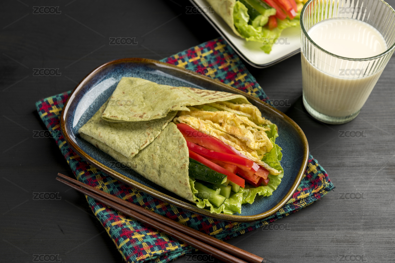 菠菜饼卷鸡蛋,大饼鸡蛋,蔬菜饼卷鸡蛋,蔬菜饼,菠菜卷饼,菠菜饼,菠菜薄饼,菠菜,早餐,豆浆