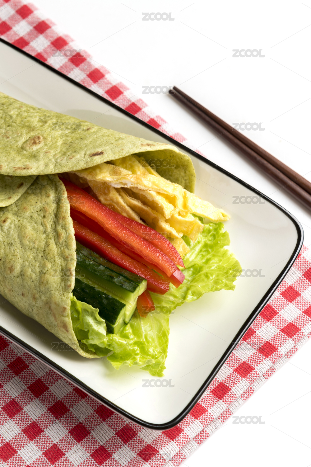 白背景营养美味蔬菜卷饼