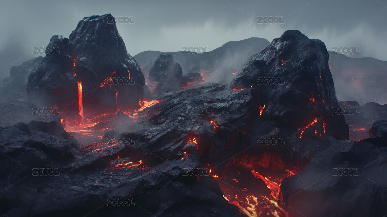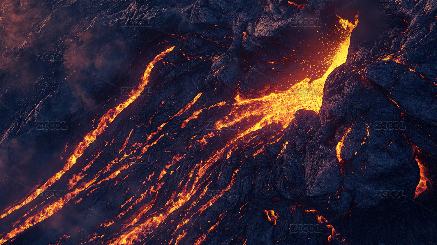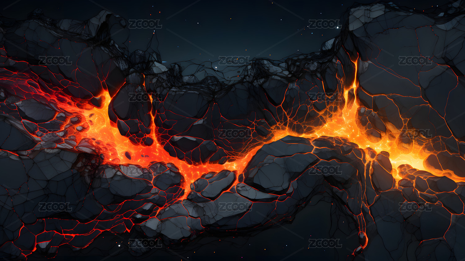 背景,橙色,黄色,岩浆,流淌,裂开,地表,暗红色,黑色,岩石