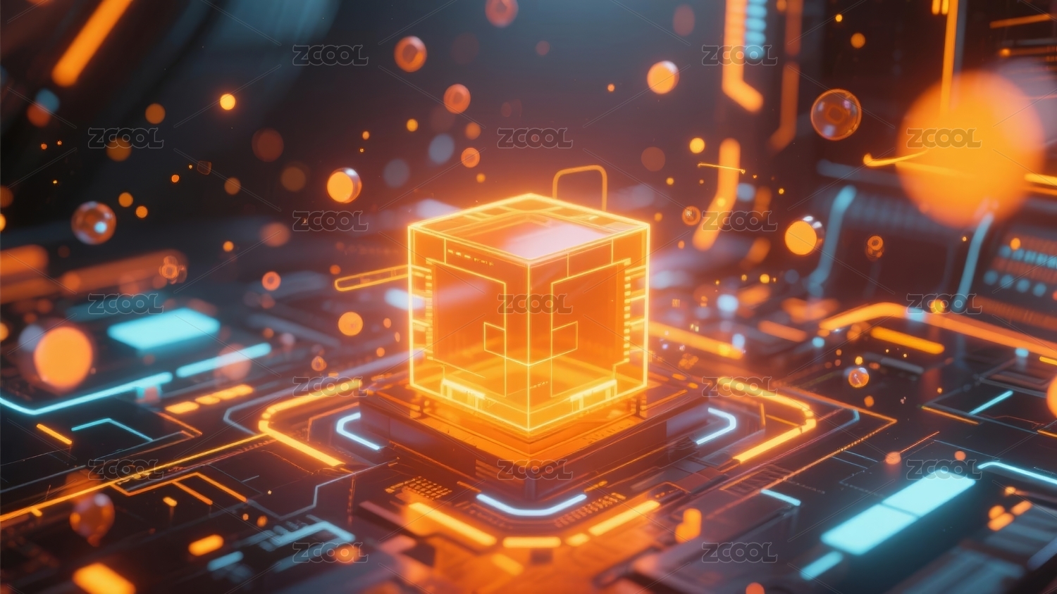 背景,蓝色,立方体,主体,黄色,发光,未来,模糊,透明,电路板
