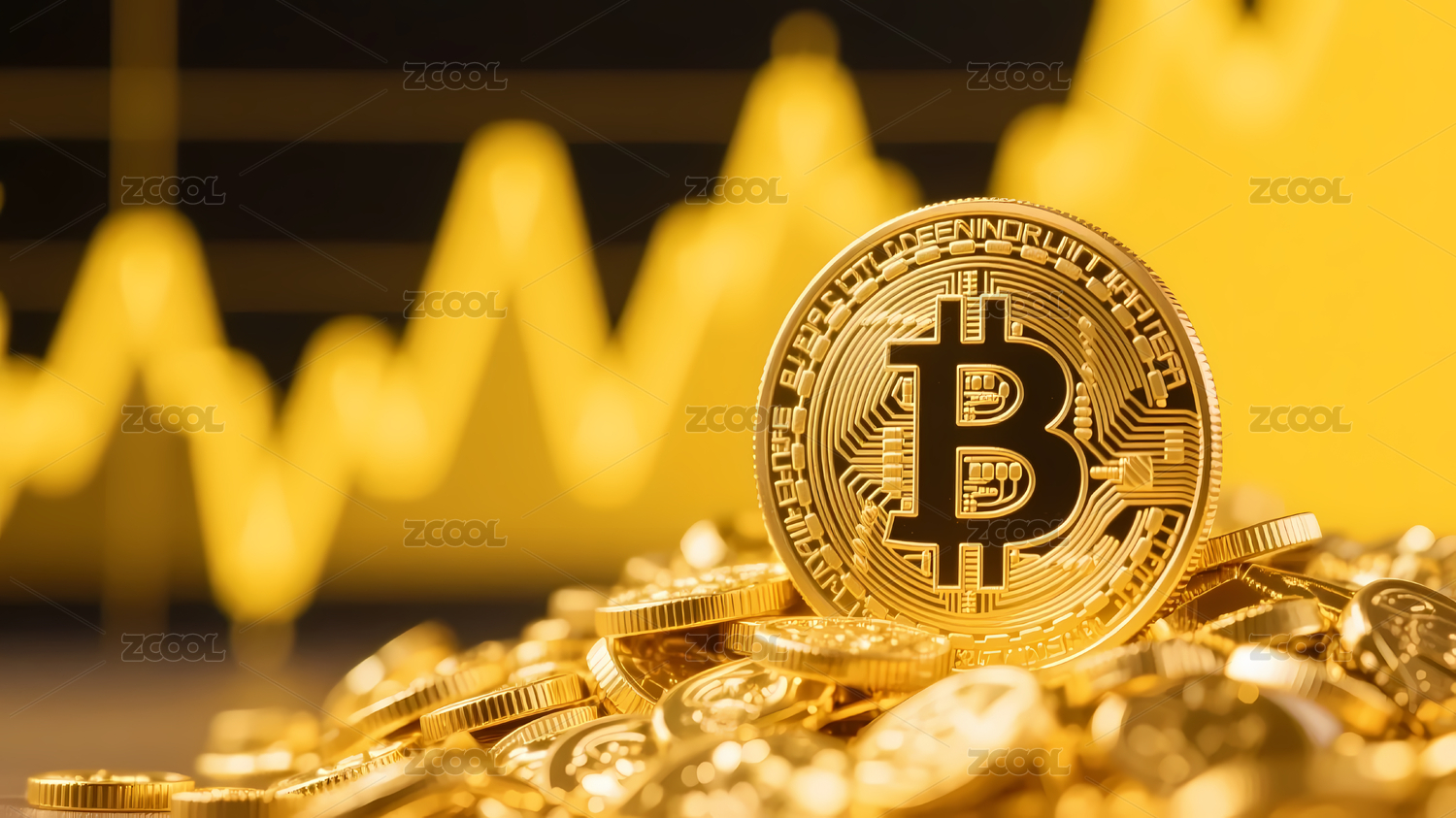 金色比特币配黄色曲线