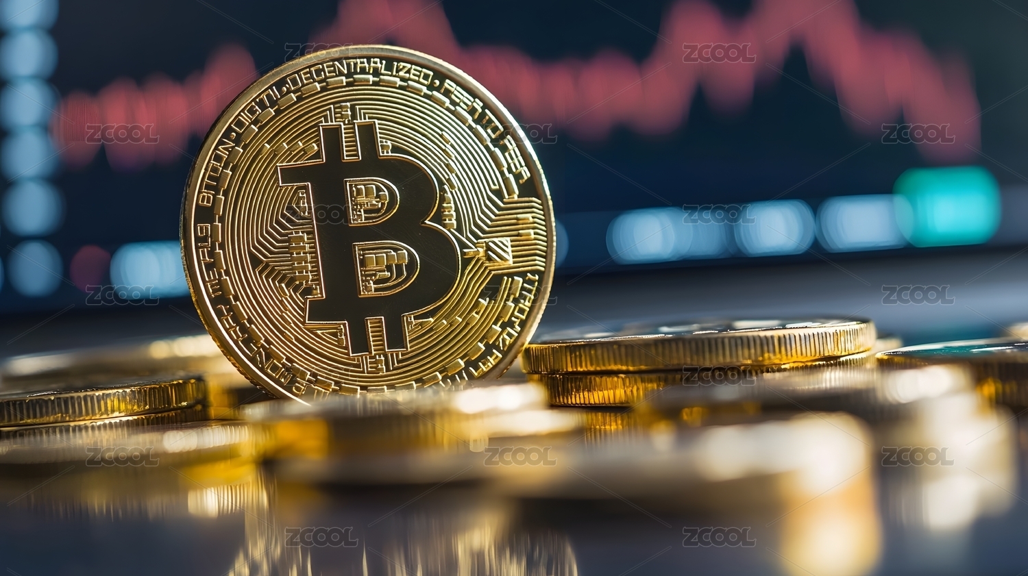 金黄色比特币与市场波动图表