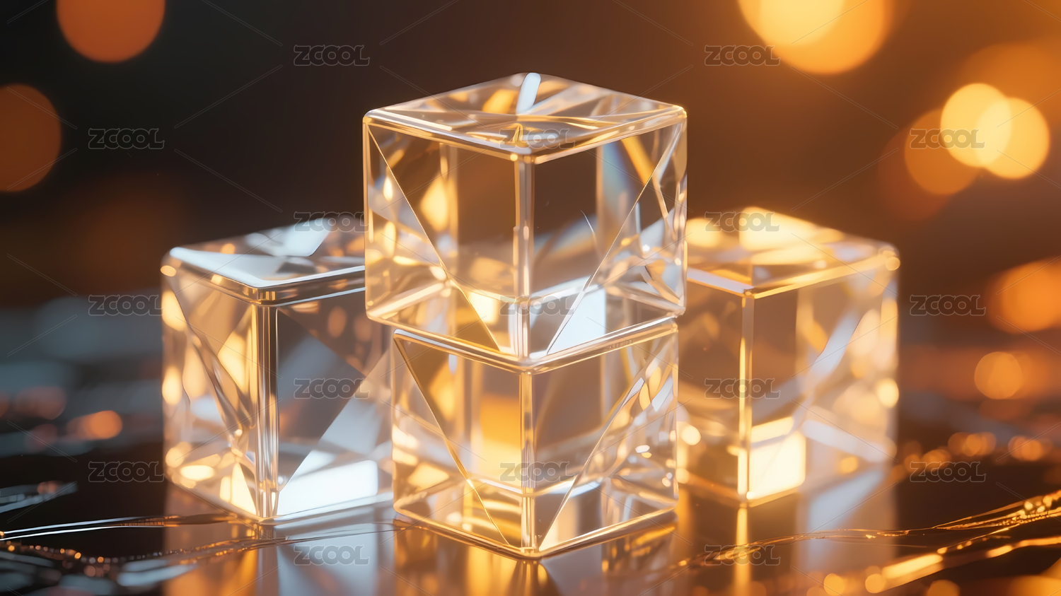 背景,金色,光斑,立方体,水晶,透明,木质,桌面,模糊,温暖