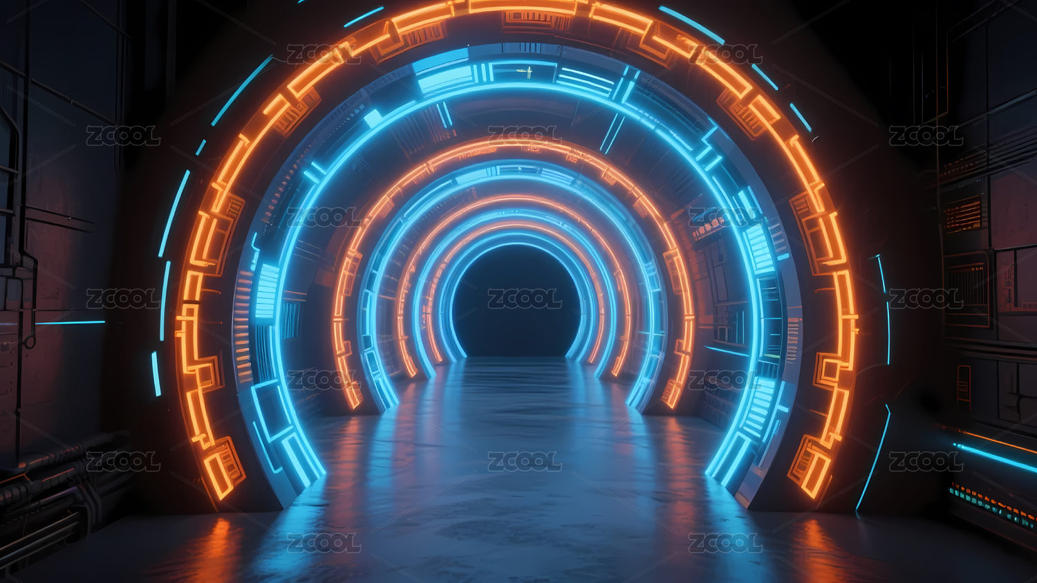 蓝色,背景,橙色,深色,结构,圆形,发光,霓虹,隧道,墙壁