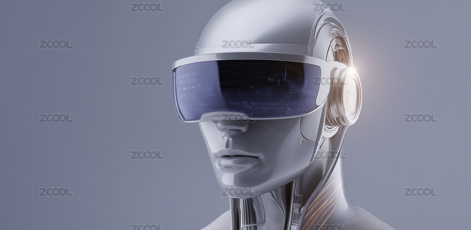 戴VR眼镜人物侧脸霓虹光线科幻感