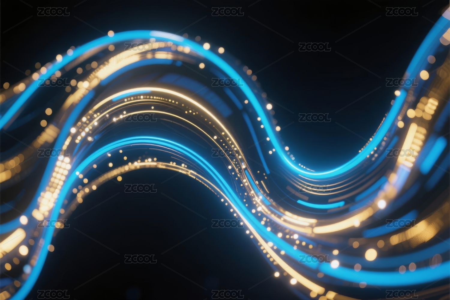 蓝黄发光线条与深色背景