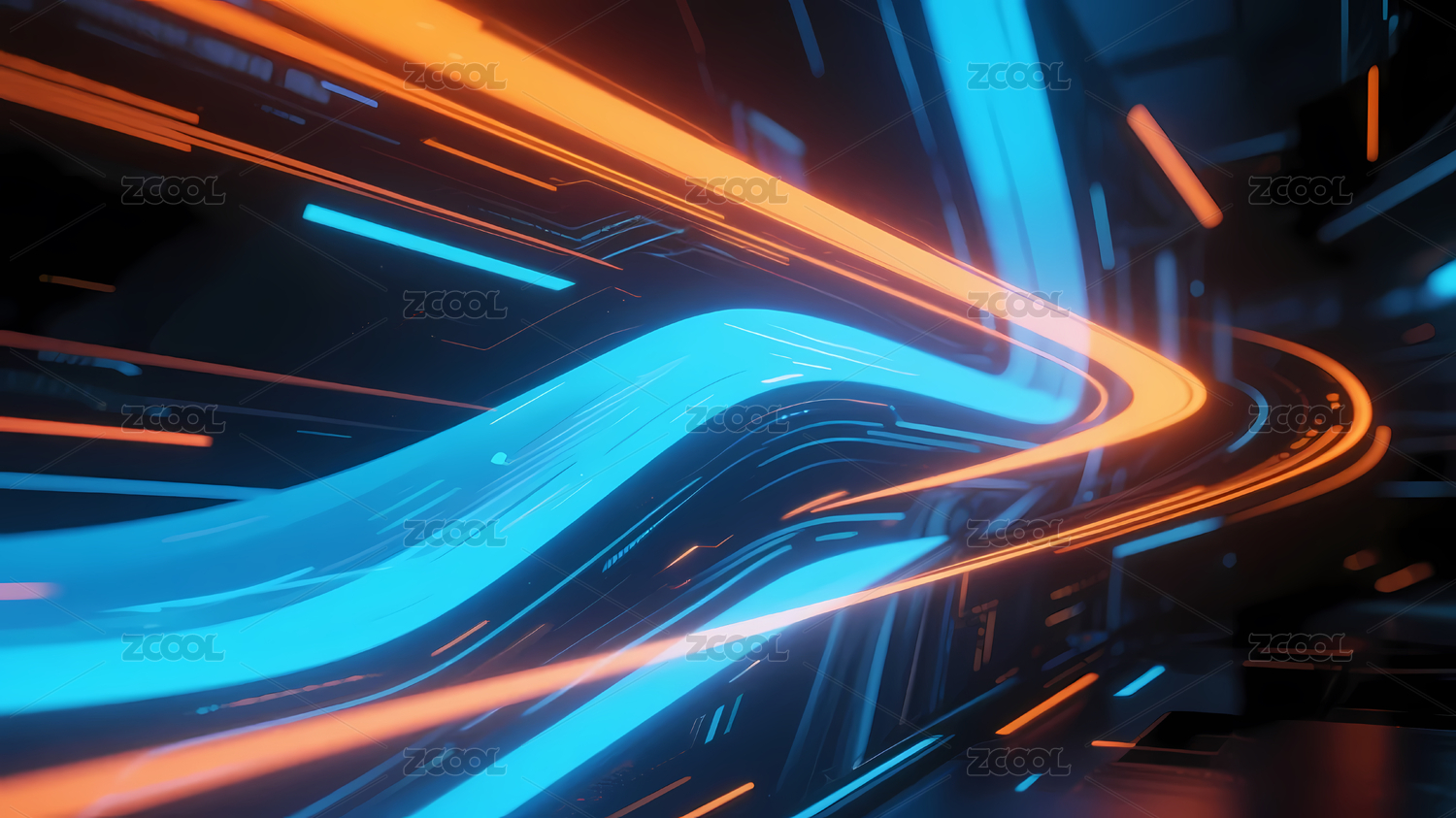 蓝橙光带未来线条