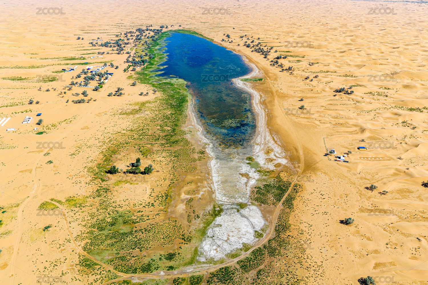 中国内蒙阿拉善腾格里沙漠龙眼翡翠湖