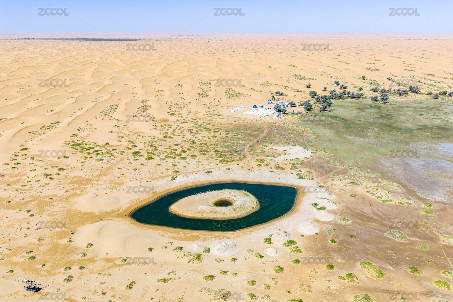 中国内蒙阿拉善腾格里沙漠龙眼翡翠湖