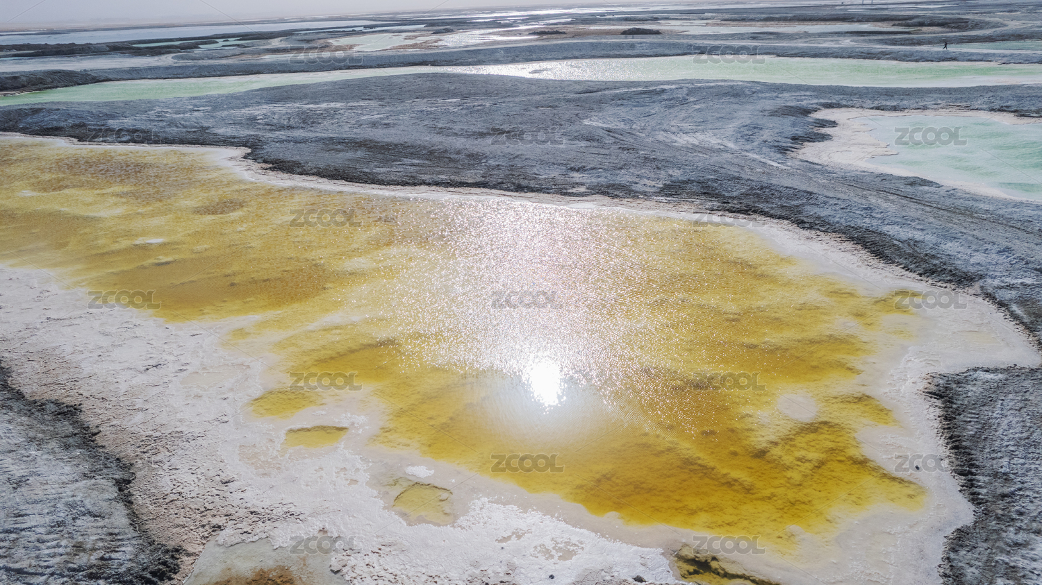 青海省大柴旦翡翠湖盐湖金色湖水航拍
